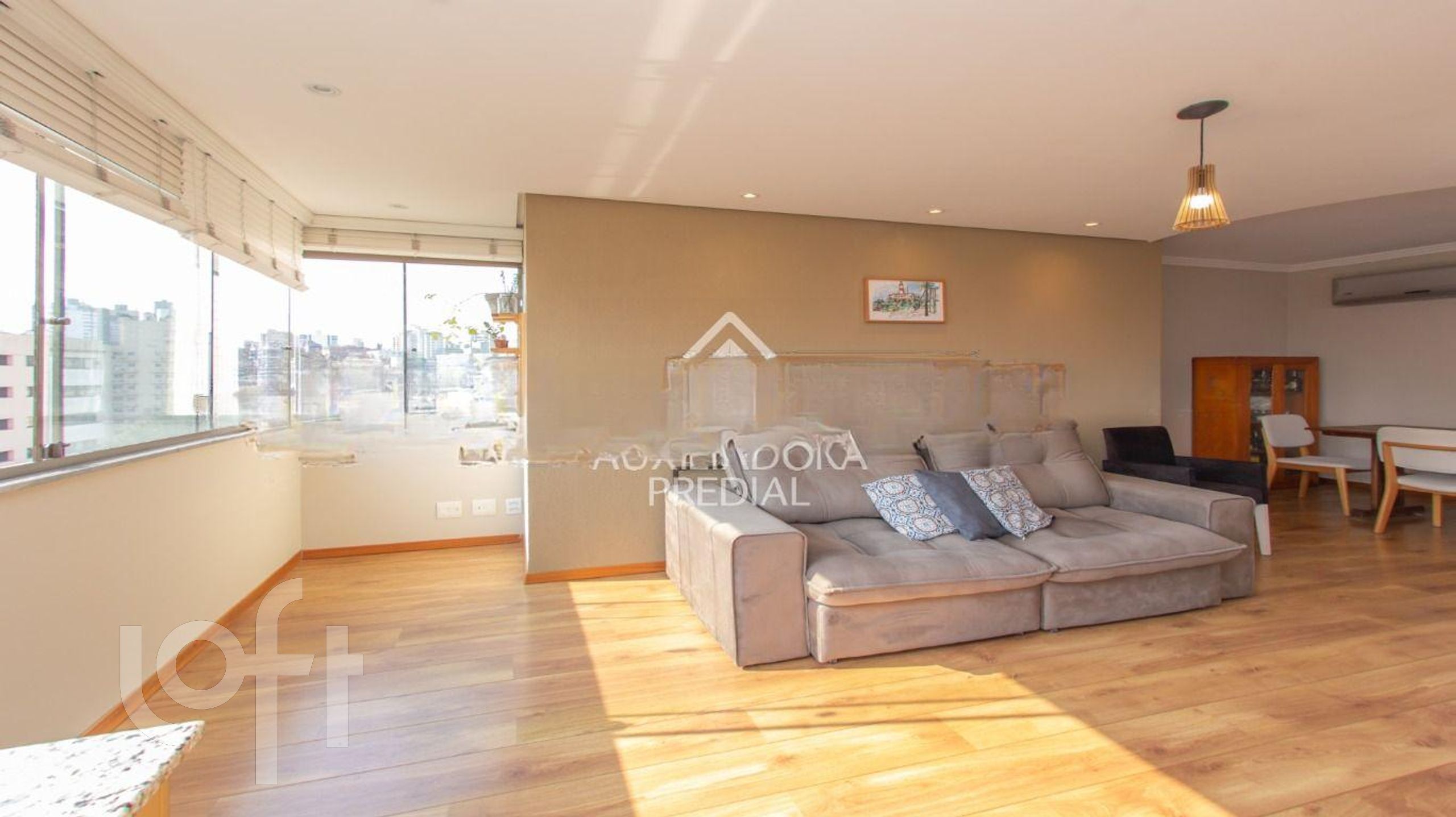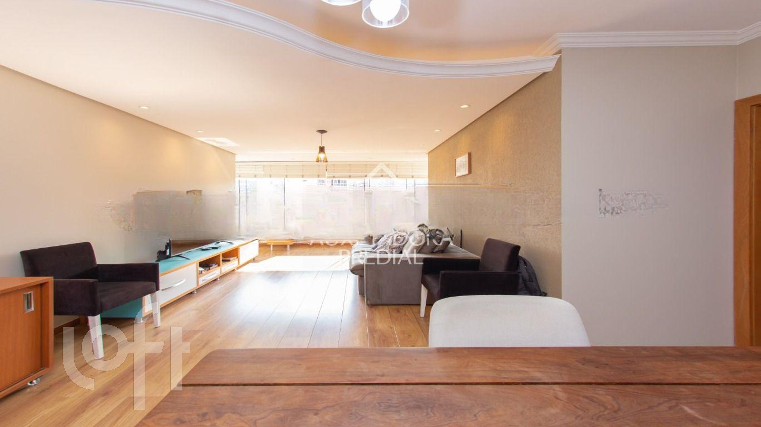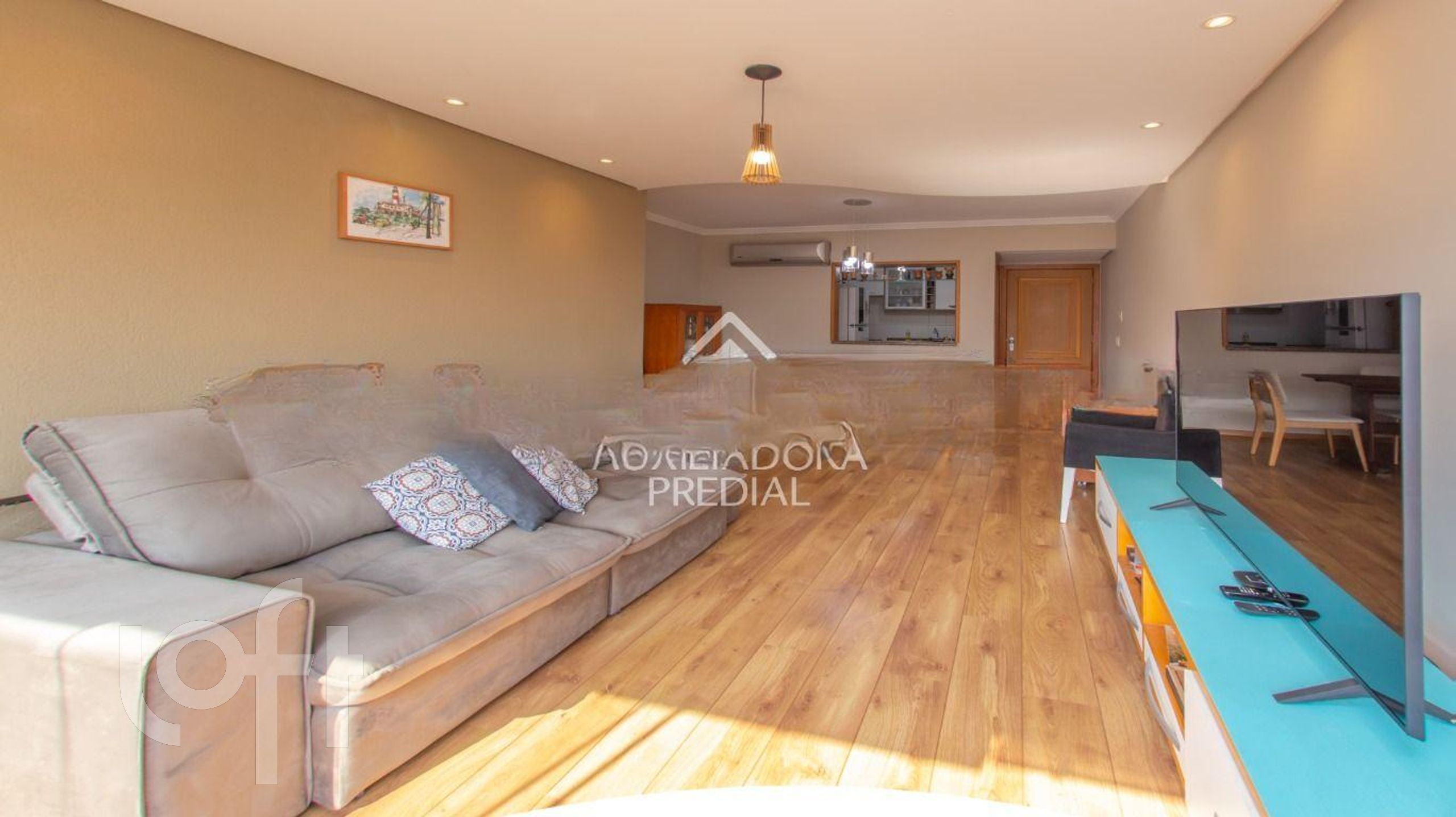 O apartamento conta com 3 dormitórios, sendo uma aconchegante suíte, e 2 banheiros no total. A área social é destacada pelo teto rebaixado em gesso e sancas com iluminação embutida, criando um ambiente moderno e acolhedor. Para seus momentos de lazer, desfrute da sua própria churrasqueira.