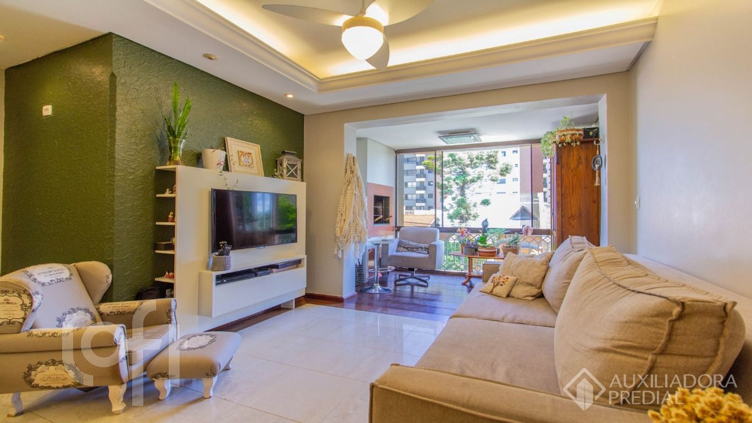 Apartamento com 3 dormitórios, 96m², com suíte, sacada com churrasqueira, 02 vagas de garagem com depósito fechado, living para 03 ambientes.
