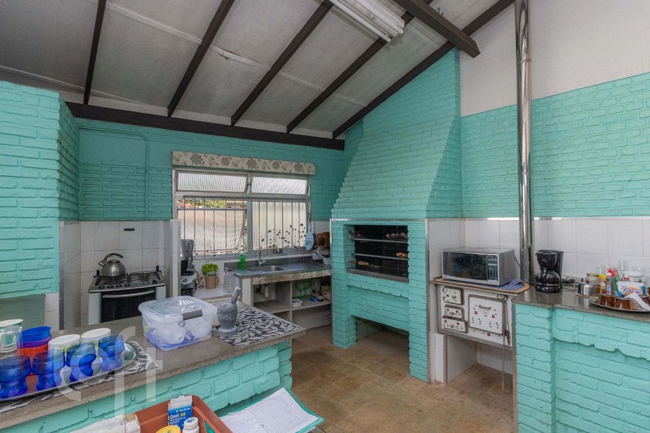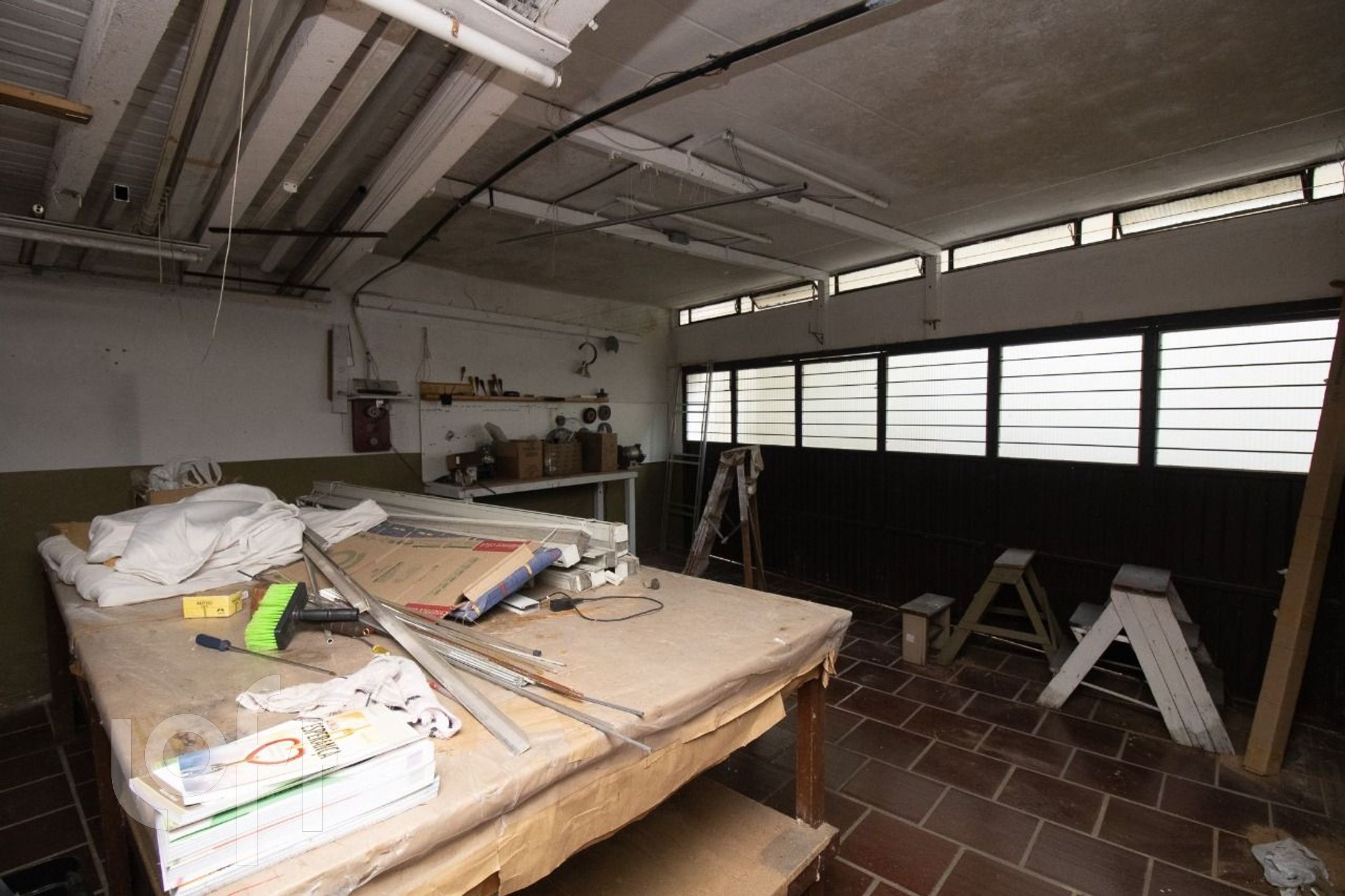 Parte Inferior: Àrea para atividade comercial com escritório, depósito, banheiro, amplo salão com 110 m2, 4 vagas de garagem