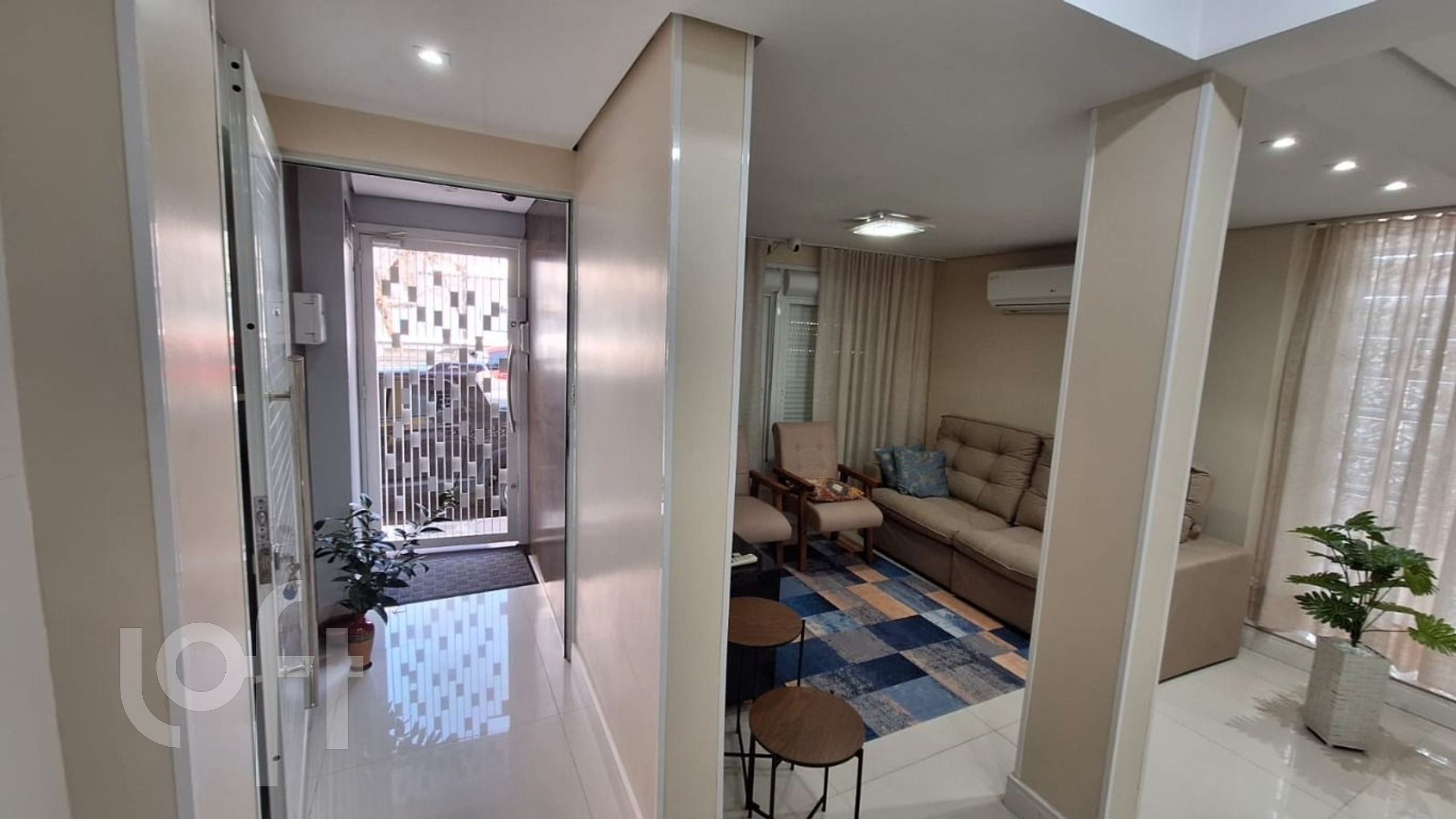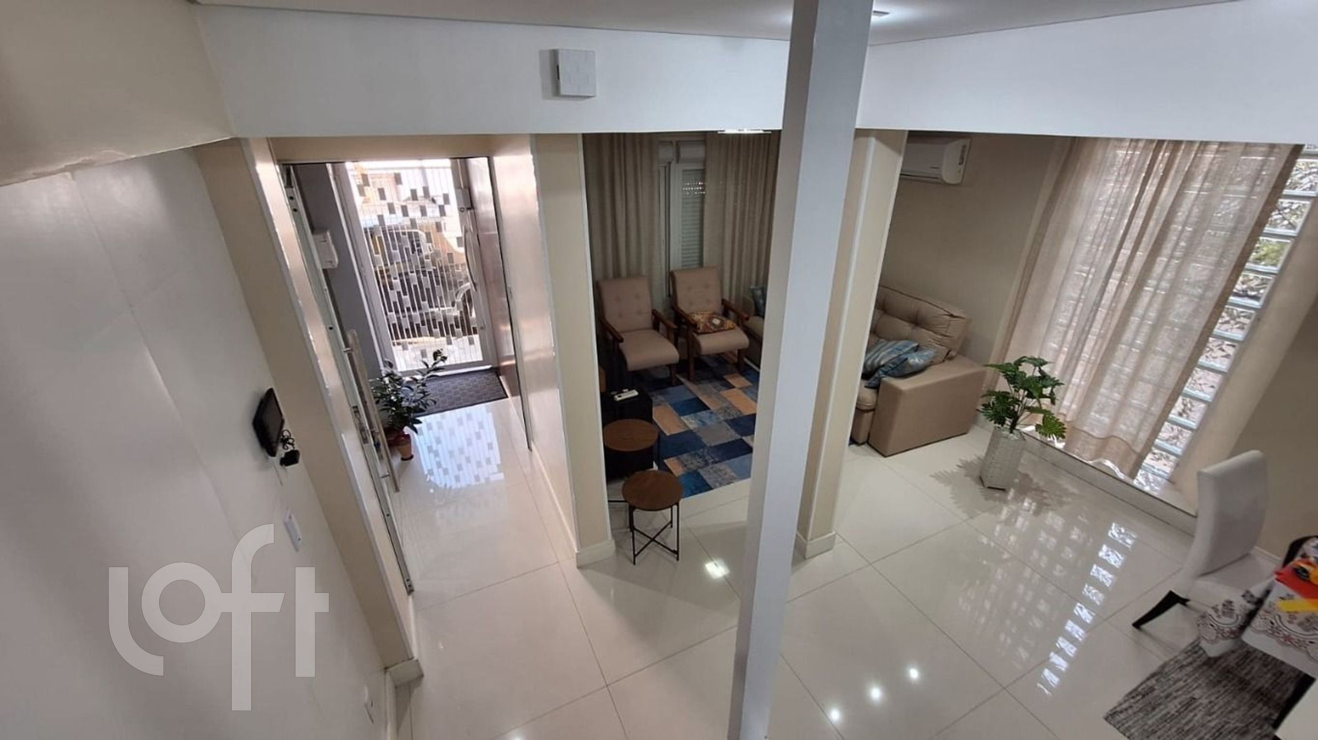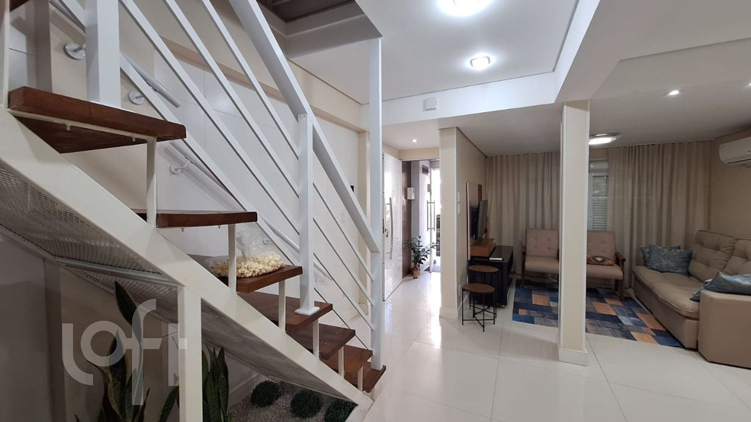 No andar térreo living 2 ambientes com cozinha integrada, piso todo em porcelanato, pequeno pátio com área de serviço, churrasqueira e banheiro social.