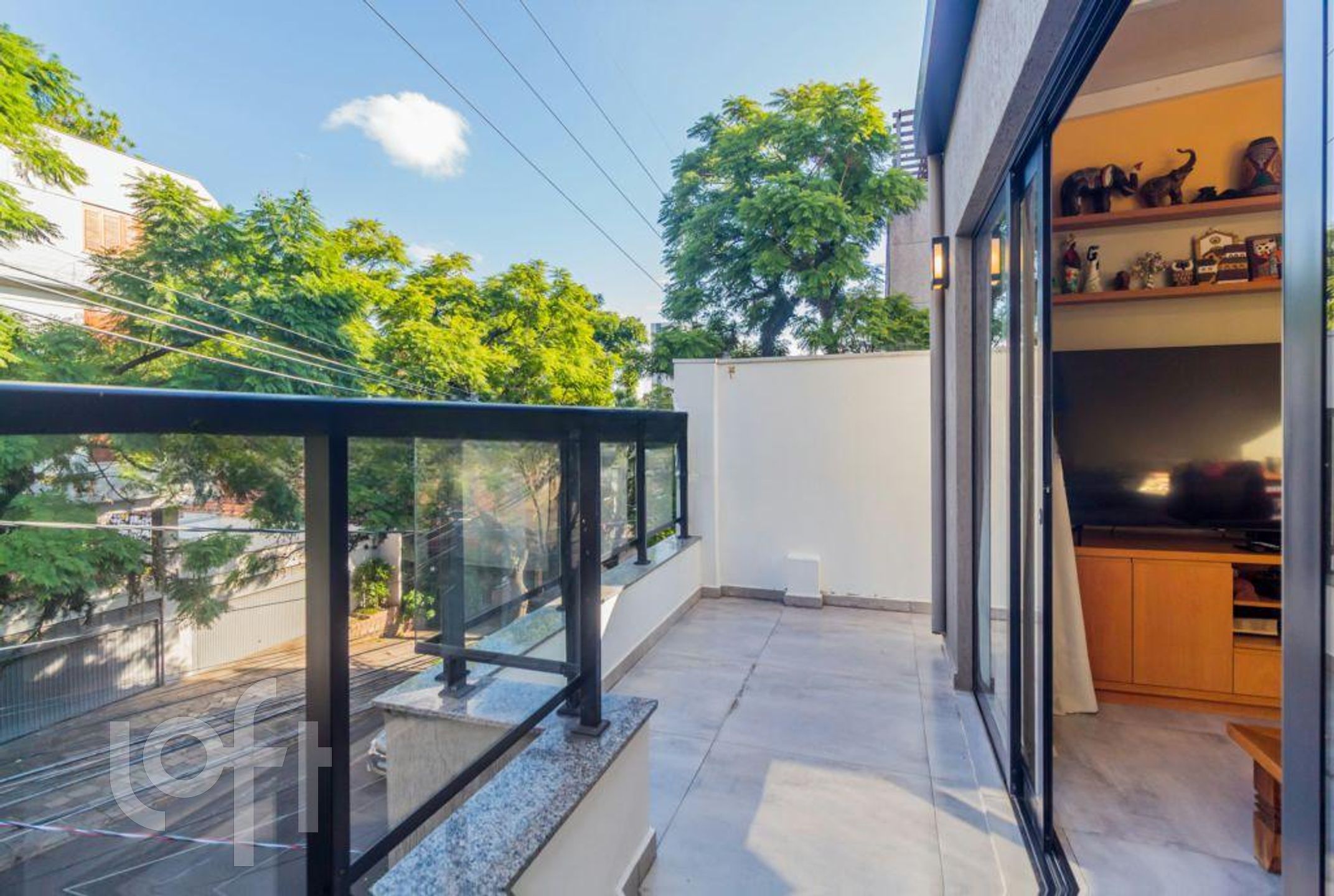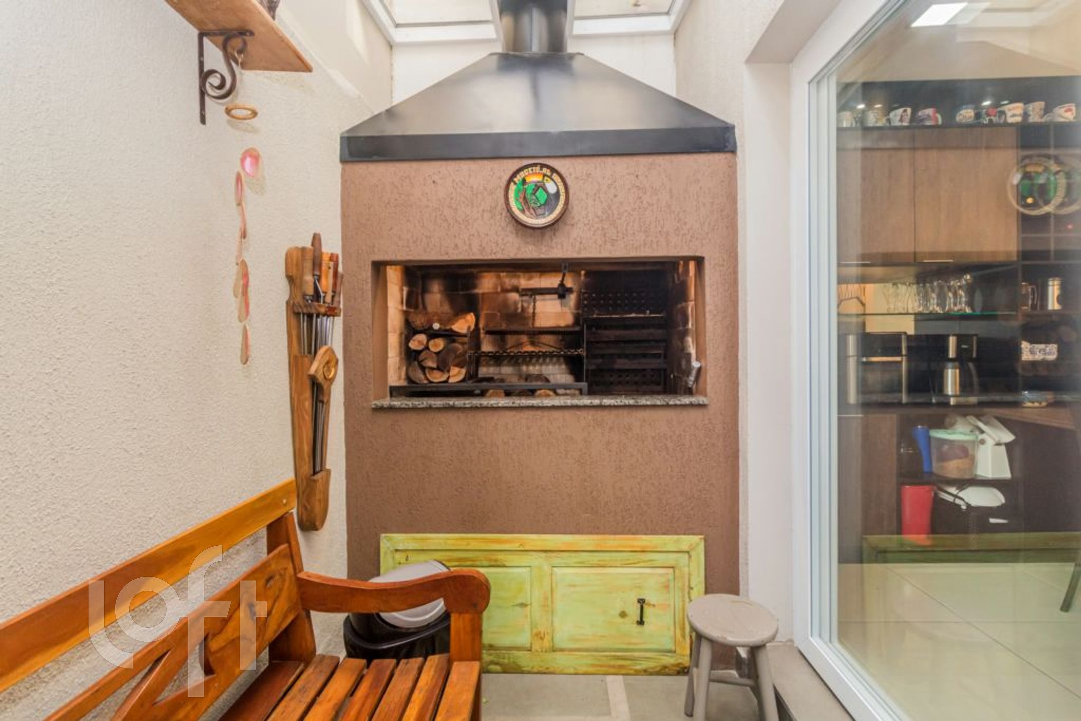 Terraço fechado com churrasqueira e lareira