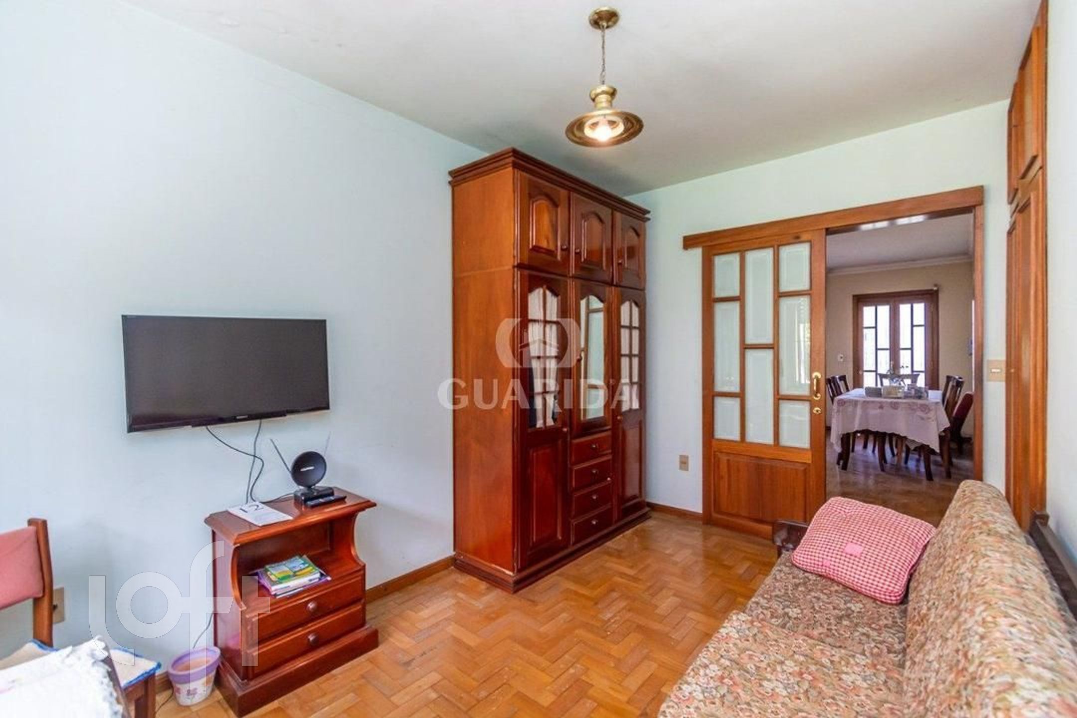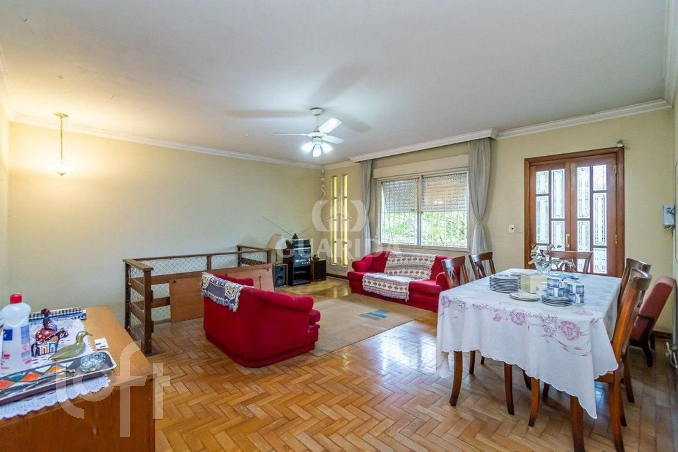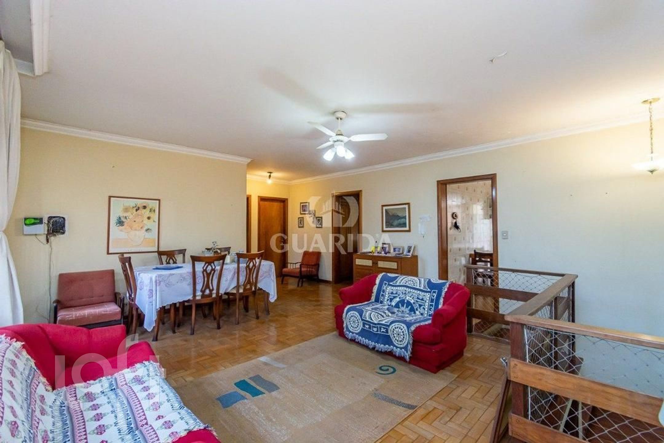 Ótima residência com 3 dormitórios, com suíte, living para 2 ambientes amplos em parquet muito bonito, sacada em toda frente com maravilhosa vista do bairro, banheiro social, ampla copa-cozinha, terraço coberto com churrasqueira, lavanderia, amplo pátio com árvores frutíferas; Na parte inferior da casa possui garagem para 3 carros, mais uma churrasqueira grande, banheiro completo, área para uma segunda cozinha, living para 2 ambientes, depósito para equipamentos, bonito jardim na frente da casa.