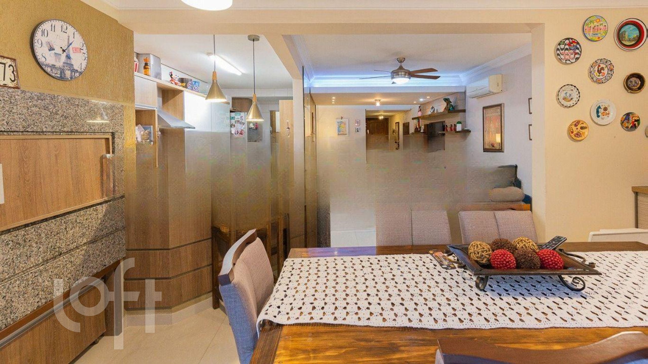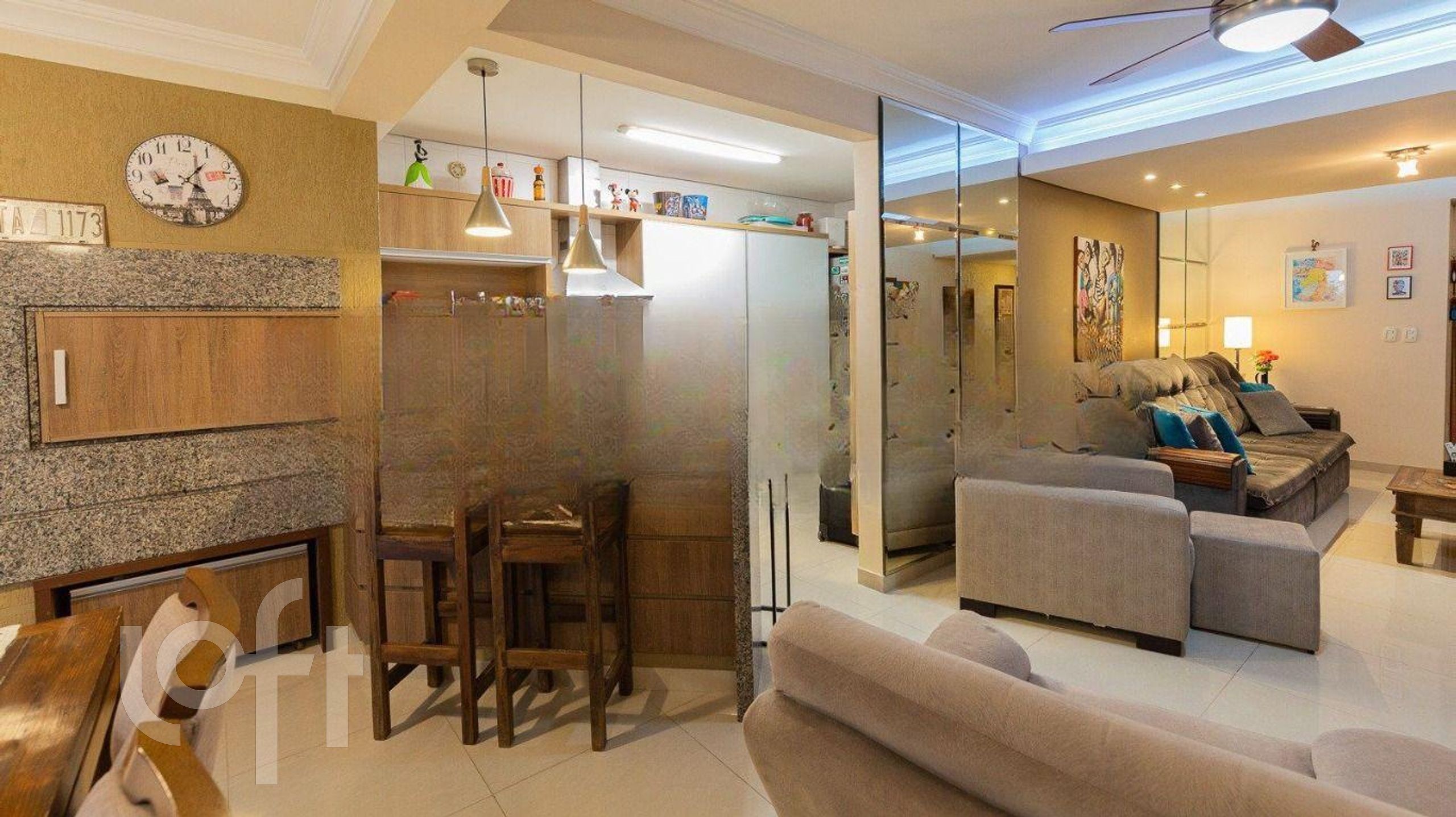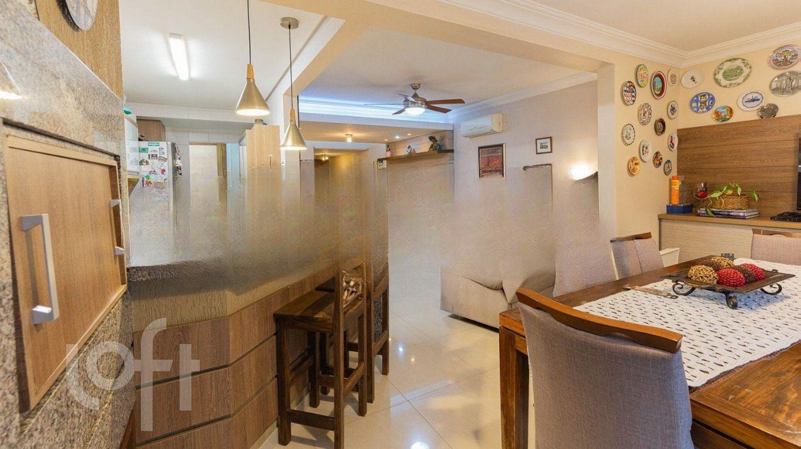 Distribuída em 3 pavimentos, conta com hall de entrada, living e cozinha americana integrada, estar com churrasqueira, lareira, lavanderia e pátio no térreo. No segundo pavimento estão os dormitórios, todos com sacada, suíte com closet, estar íntimo e banheiro social. No terceiro andar tem gabinete e banheiro completo.