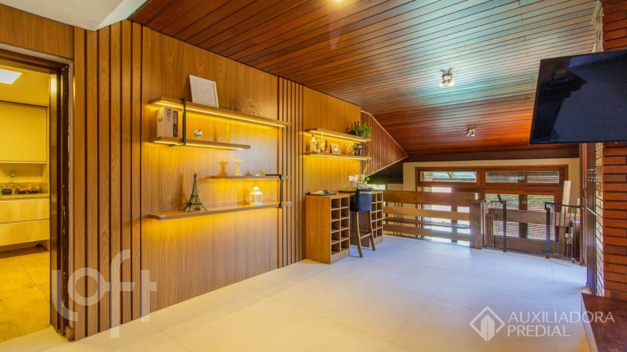 No segundo pavimento são 4 amplos dormitórios, 2 suítes, sendo 1 americana. A casa oferece um belo pátio com piscina, espaço com muito sol e um pub com adega e uma decoração temática.