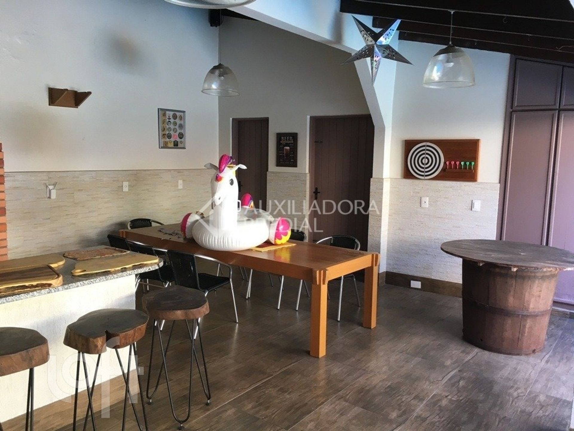Algumas características do imóvel: Agua Quente, Area Servico, Banheiro Social, Churrasqueira, Estar Intimo, Lareira, Lavabo, Leste, Living Hall, Piscina, Sacada, Sacada Com Churrasqueira, Suite Master, W C Empregada