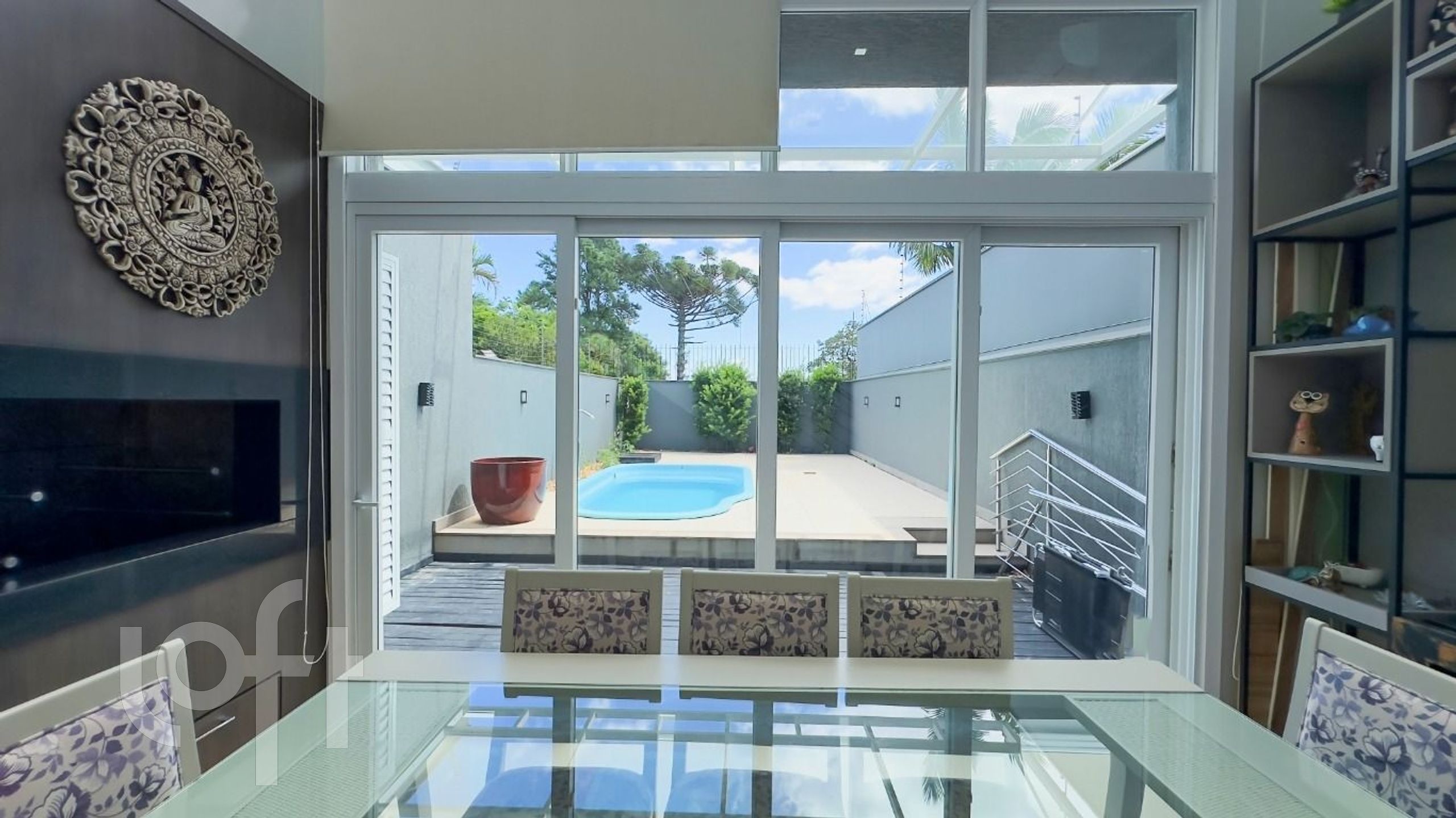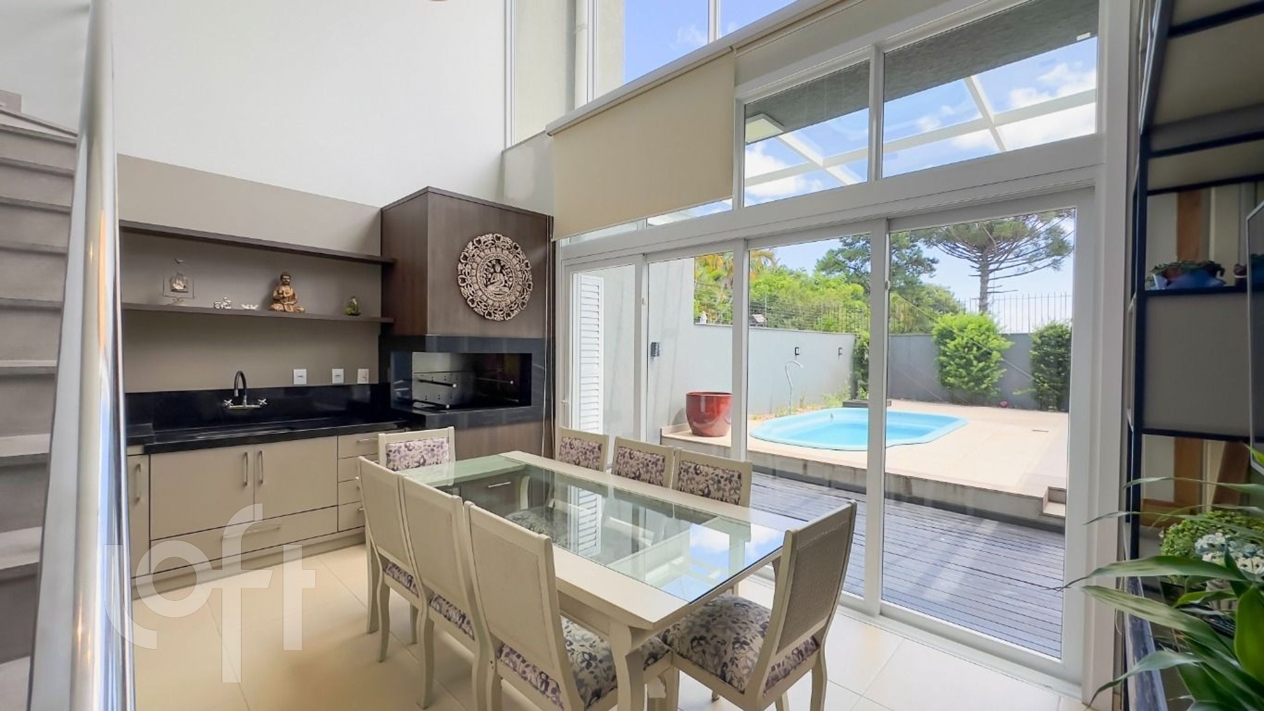 Algumas características do imóvel: Aceita Pet, Agua Quente, Area Servico, Banheiro Social, Churrasqueira, Dependenciade Empregada, Lareira, Lavabo, Leste, Living Hall, Piscina, Sacada, Sacada Com Churrasqueira, Sala Jantar, Suite Master, Vista Panoramica, W C Empregada