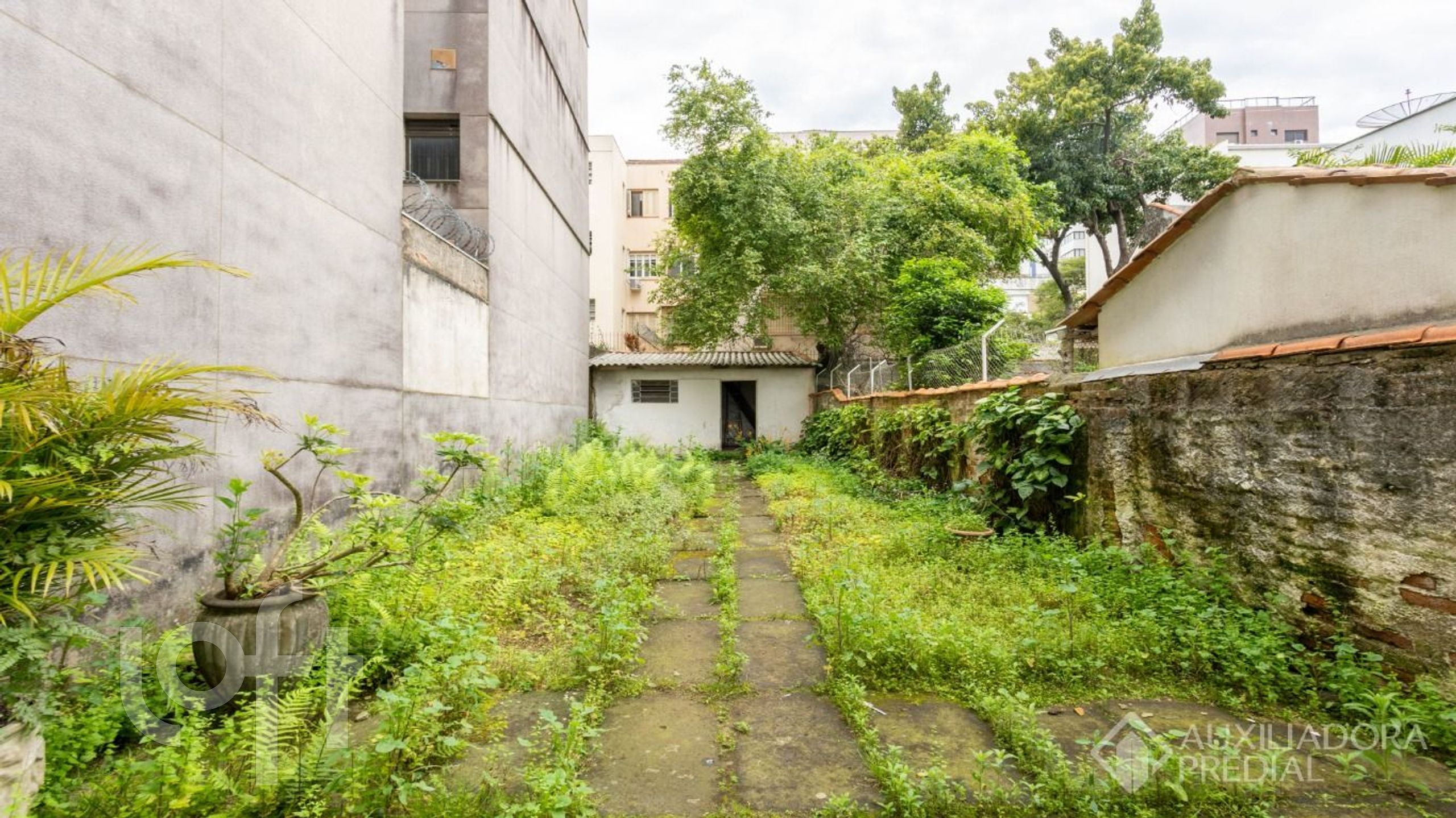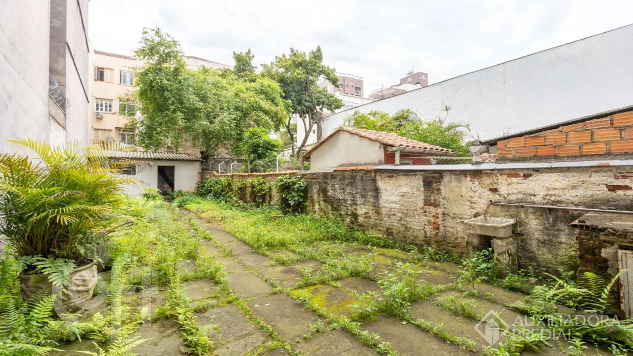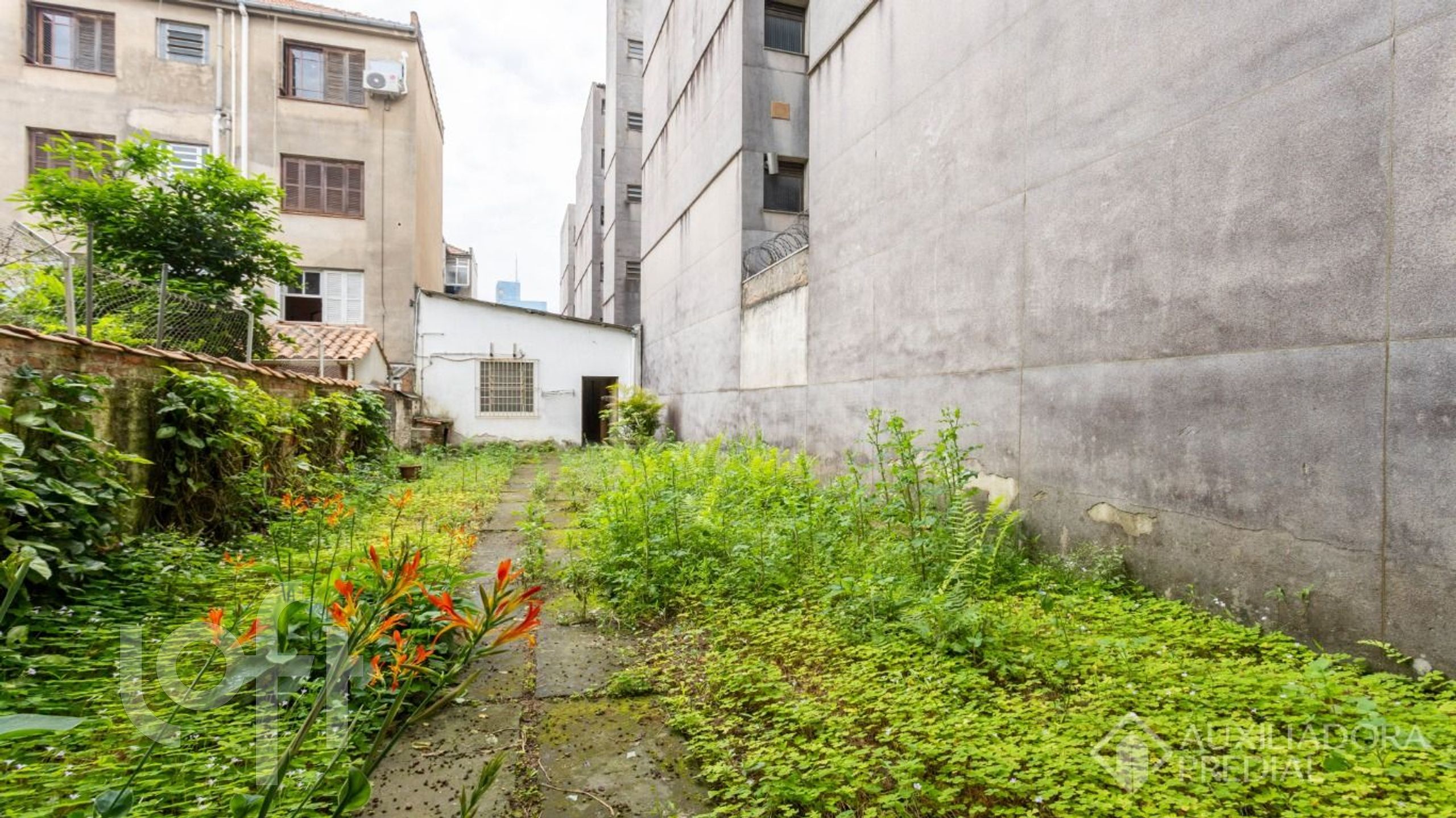 Amplo terreno medindo 5,60 x 58,47, nos fundos possui pátio e uma pequena edícula, que servia como arquivo.