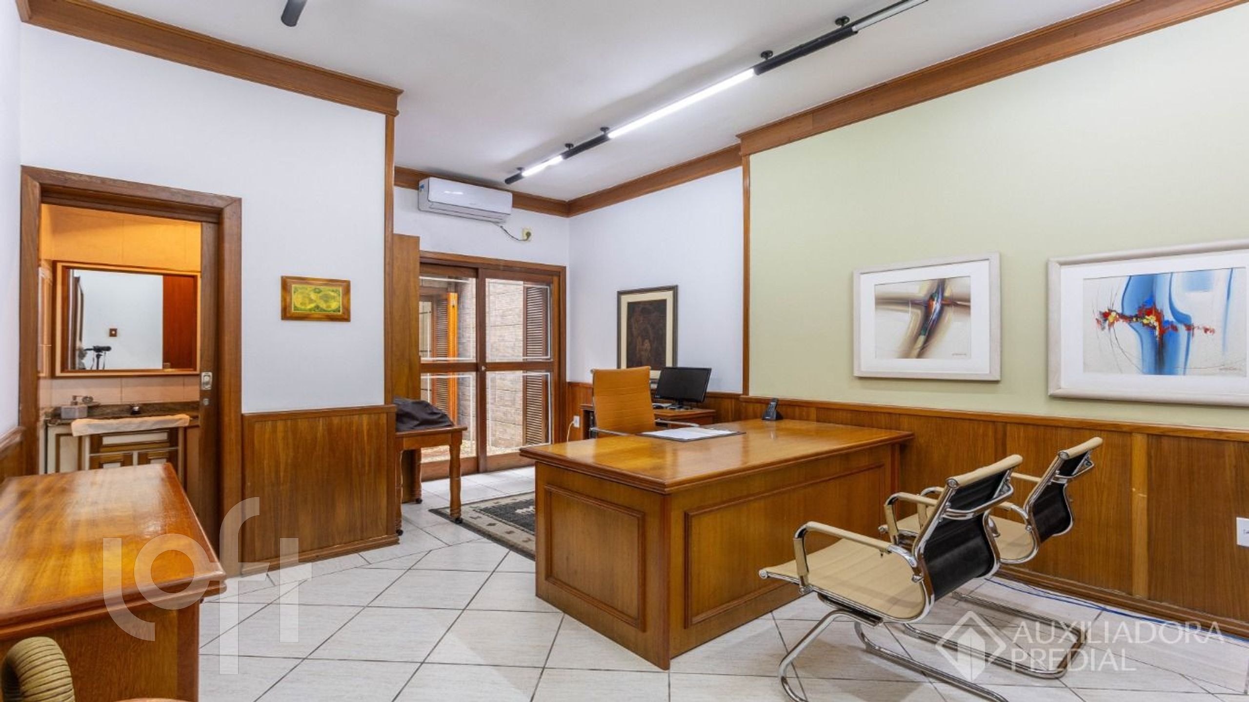 A casa conta com recepção, 05 salas, sendo 2 com lavabo e jardim de inverno, circulação, sala de reuniões, 2 banheiros sociais e cozinha, em bom estado de conservação.