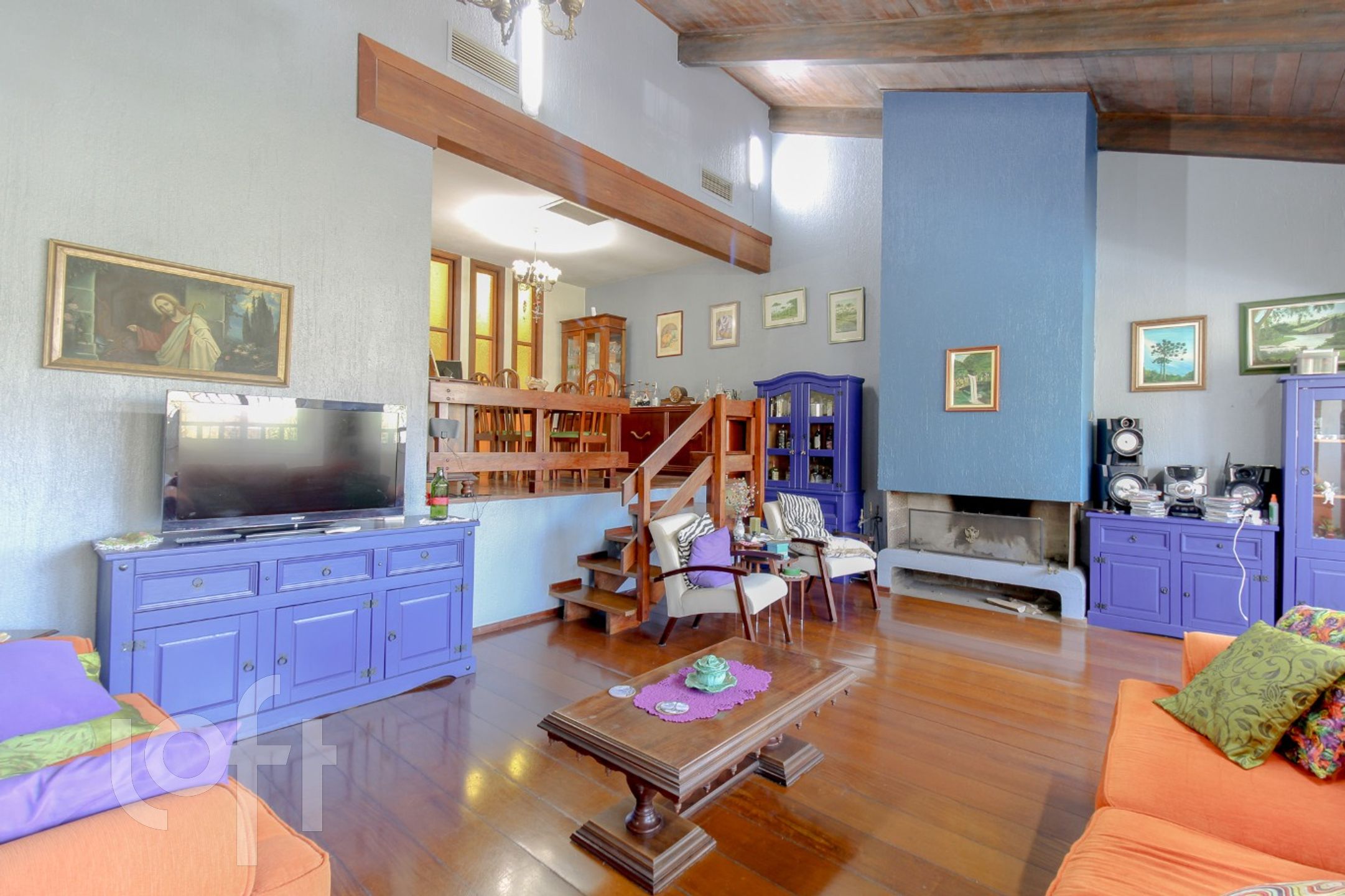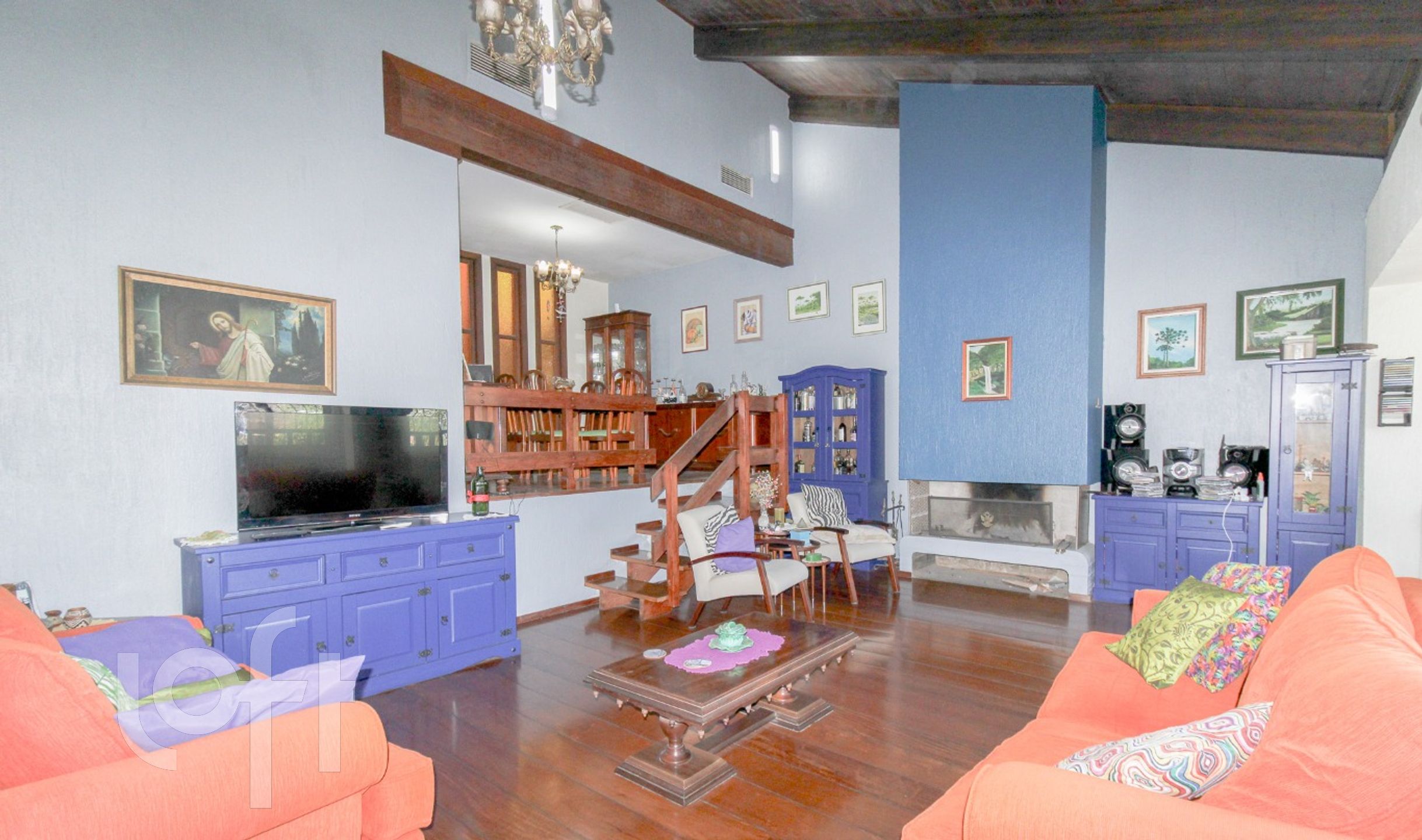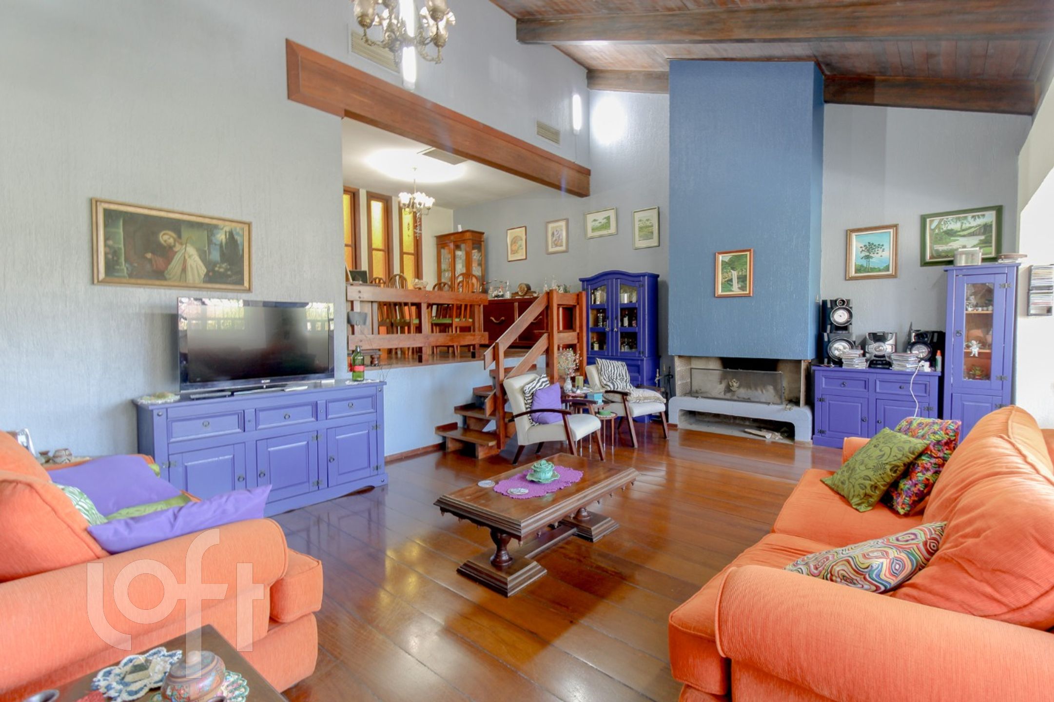 CASA com amplo hall de entrada, lavabo, sala de estar com lareira e jantar em um nível mais alto, teto estilo catedral, que dá uma sensação de mais espaço para estes ambientes, além de uma ótima iluminação. Copa-cozinha montada. No piso superior estar íntimo com outra lareira, a suite máster incorporou o quarto dormitório (fácil reversão), outros dois dormitórios de solteiro e banho social.