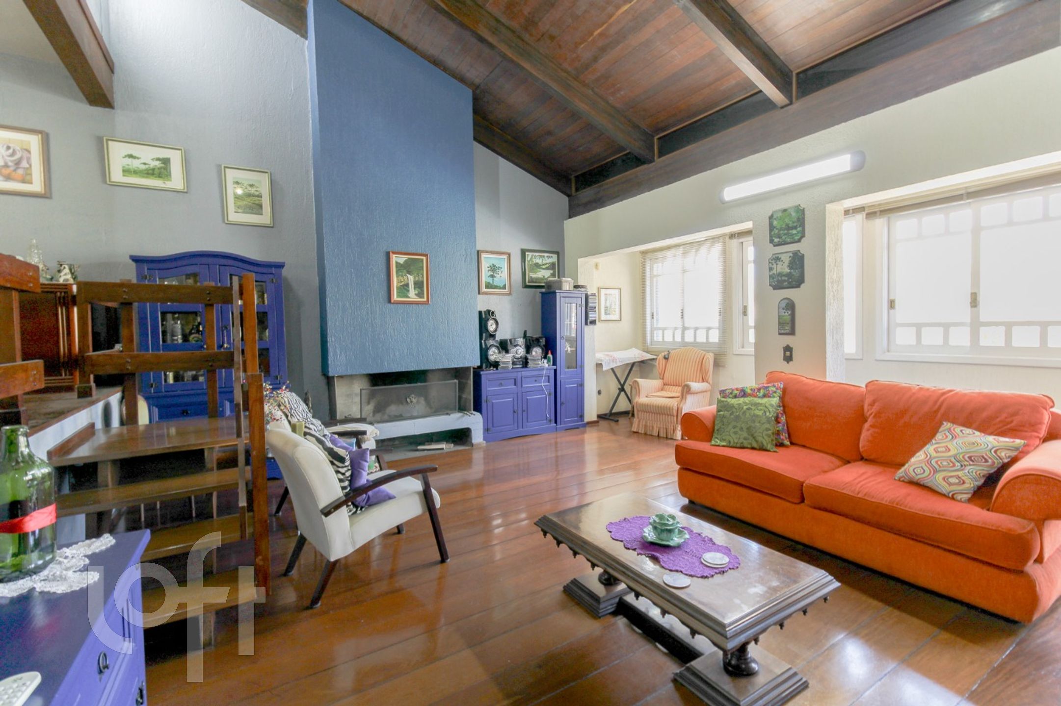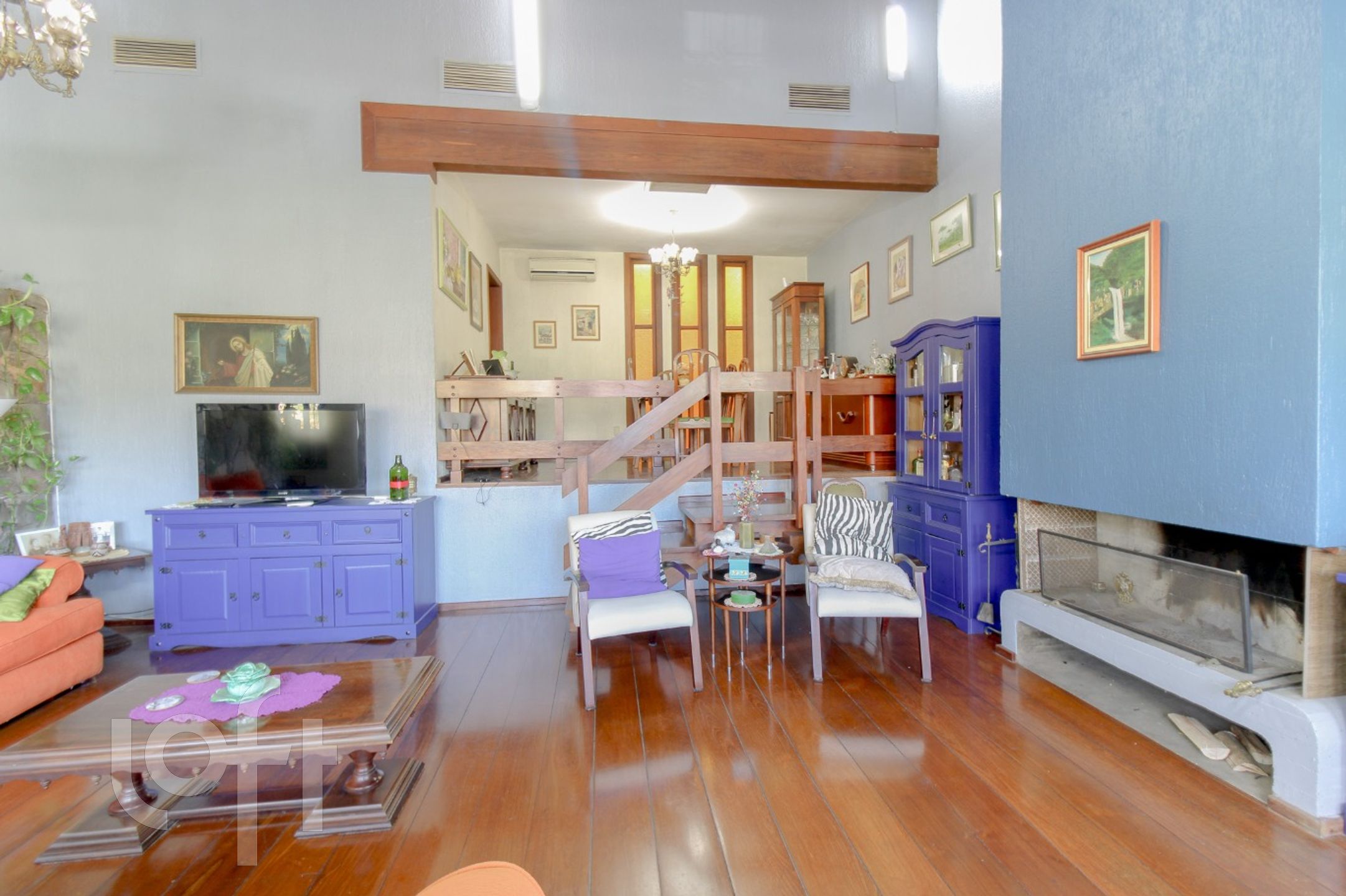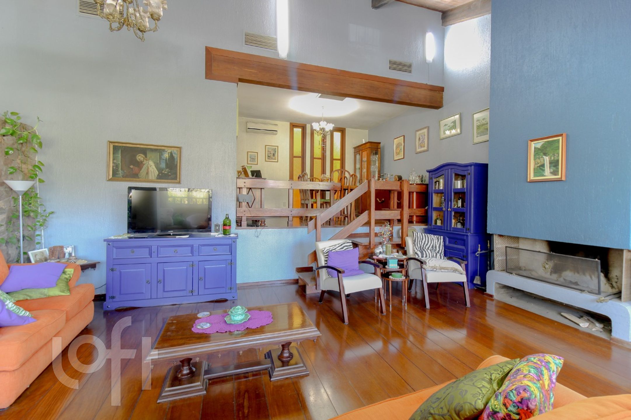 CASA com amplo hall de entrada, lavabo, sala de estar com lareira e jantar em um nível mais alto, teto estilo catedral, que dá uma sensação de mais espaço para estes ambientes, além de uma ótima iluminação. Copa-cozinha montada. No piso superior estar íntimo com outra lareira, a suite máster incorporou o quarto dormitório (fácil reversão), outros dois dormitórios de solteiro e banho social.