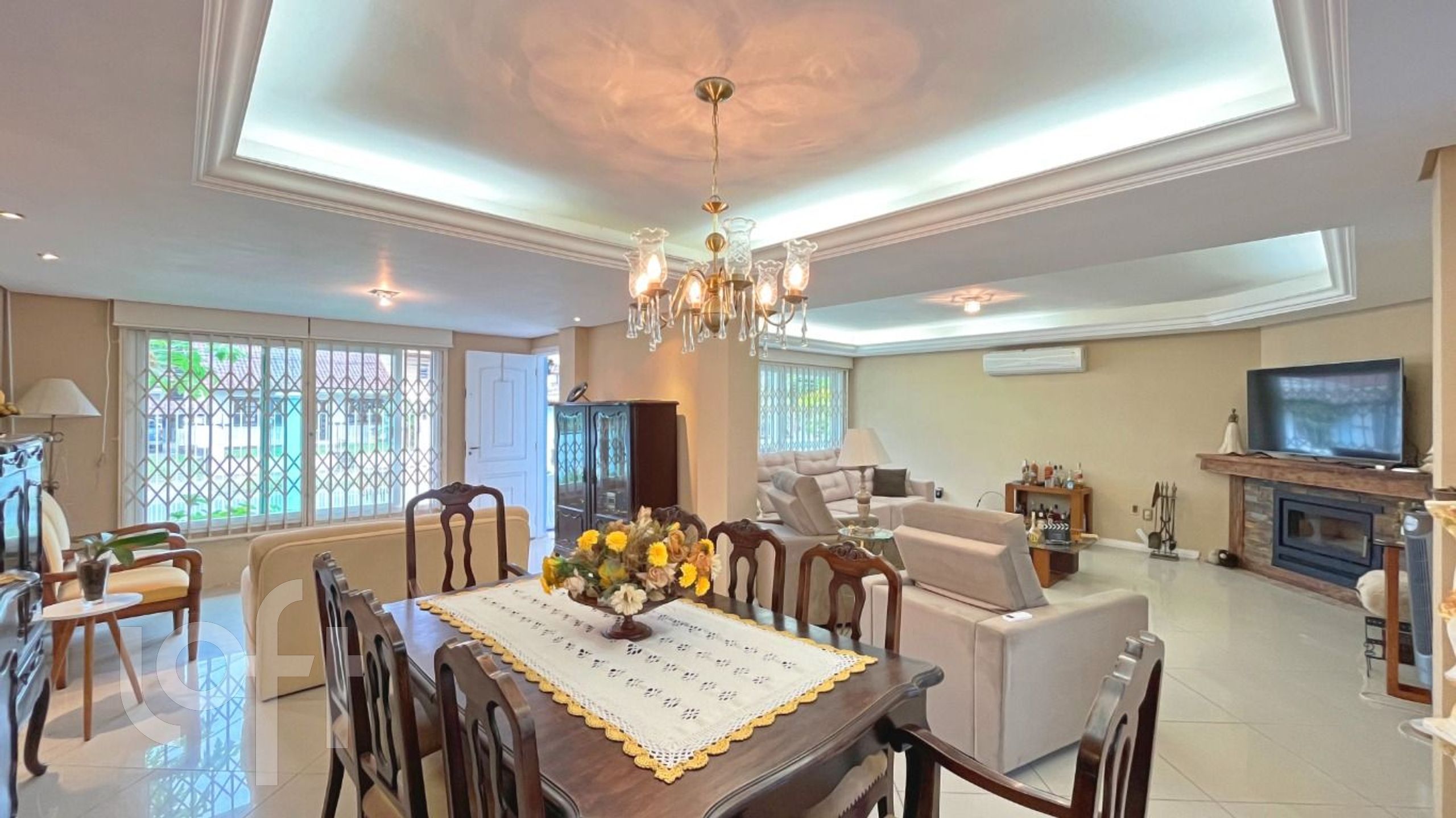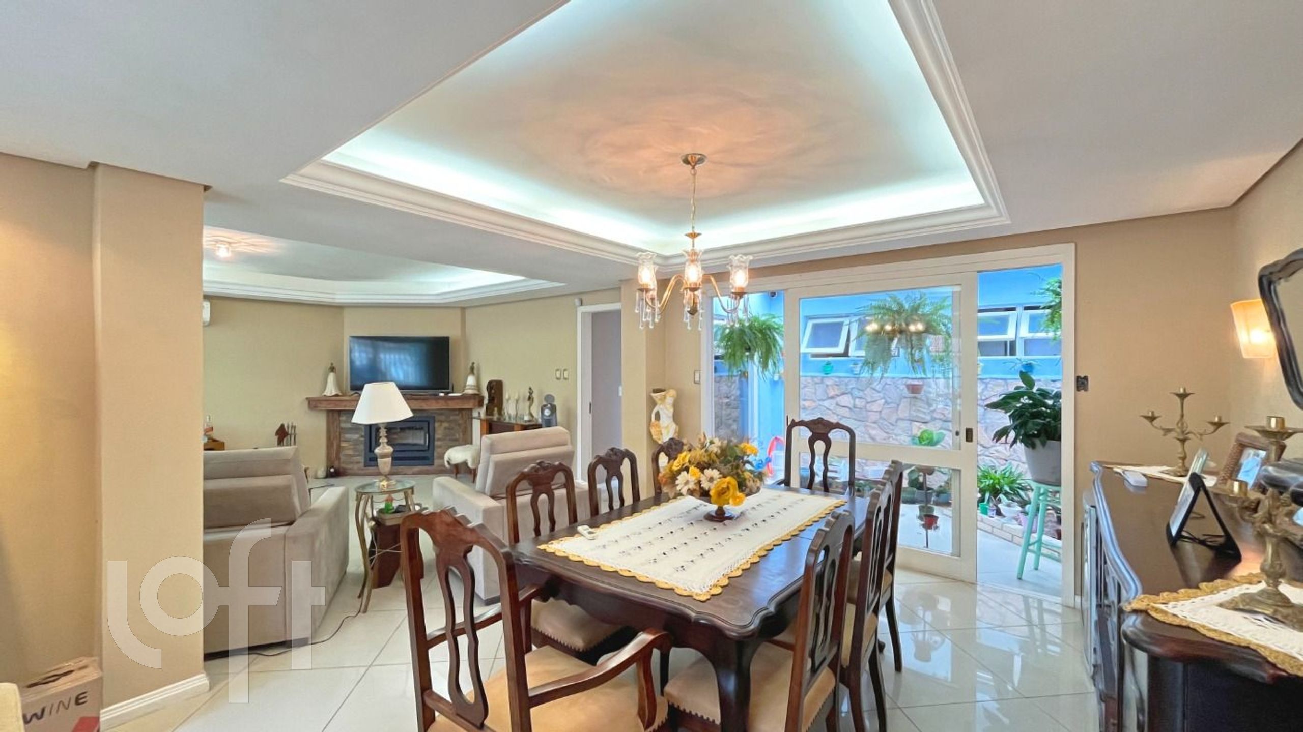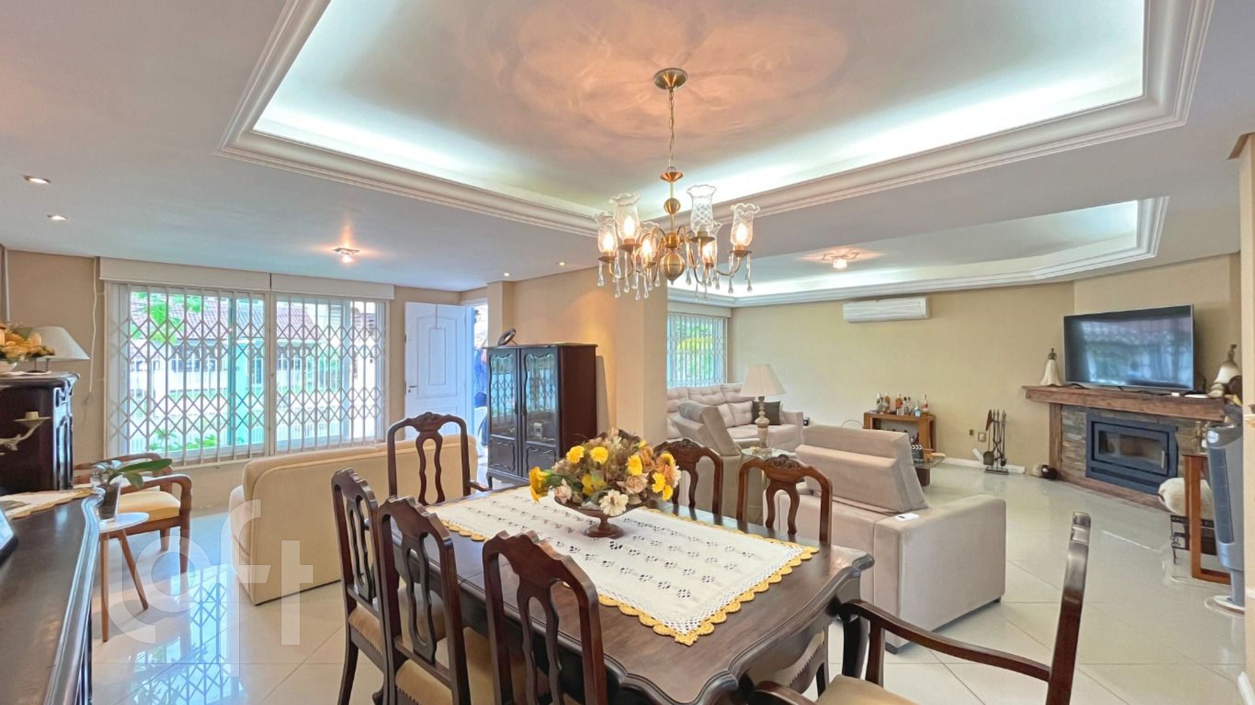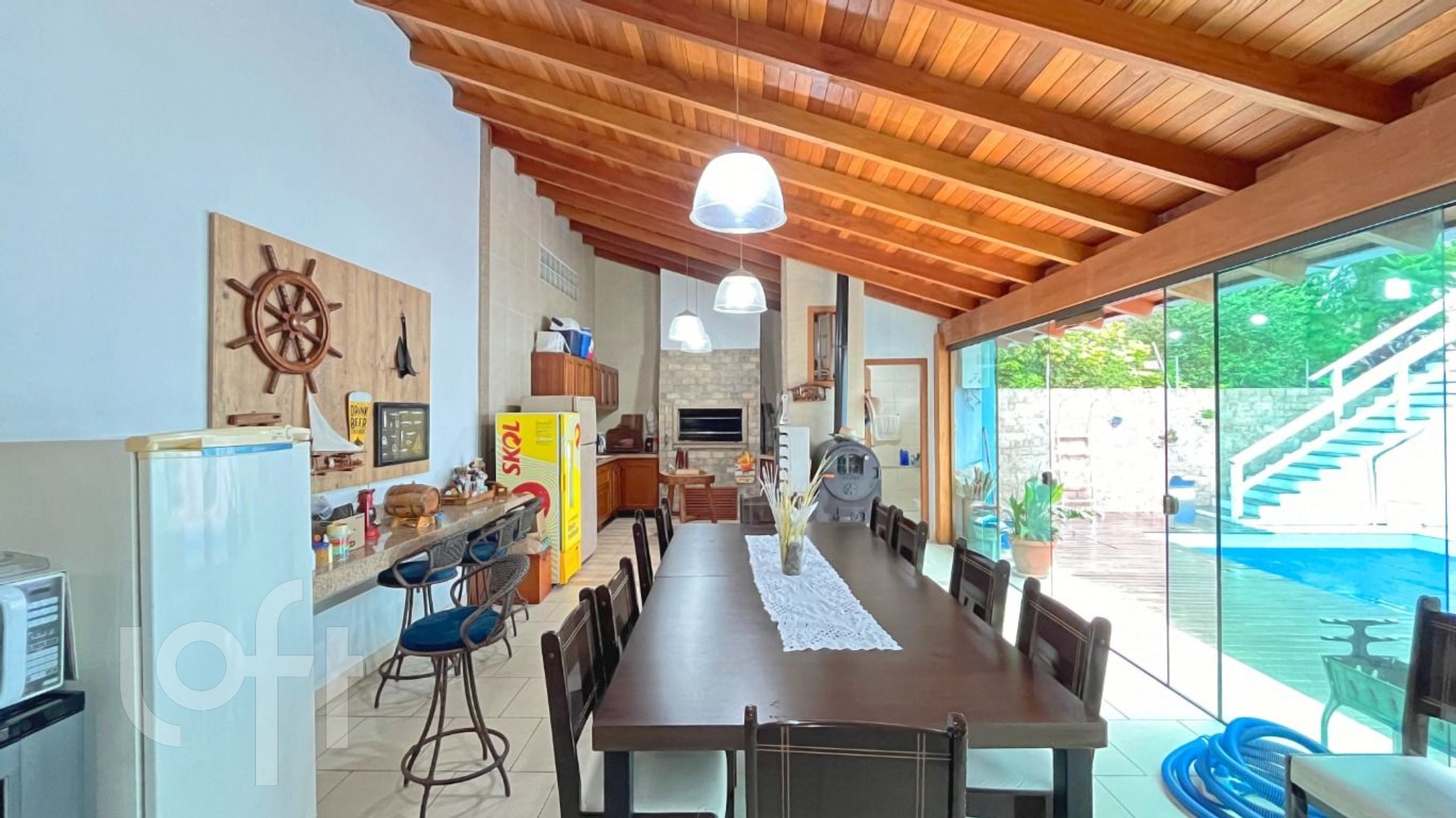 Algumas características do imóvel: Aceita Pet, Agua Quente, Area Servico, Banheiro Social, Churrasqueira, Copa Cozinha, Lareira, Living Hall, Piscina, Sacada Com Churrasqueira, Sala Jantar