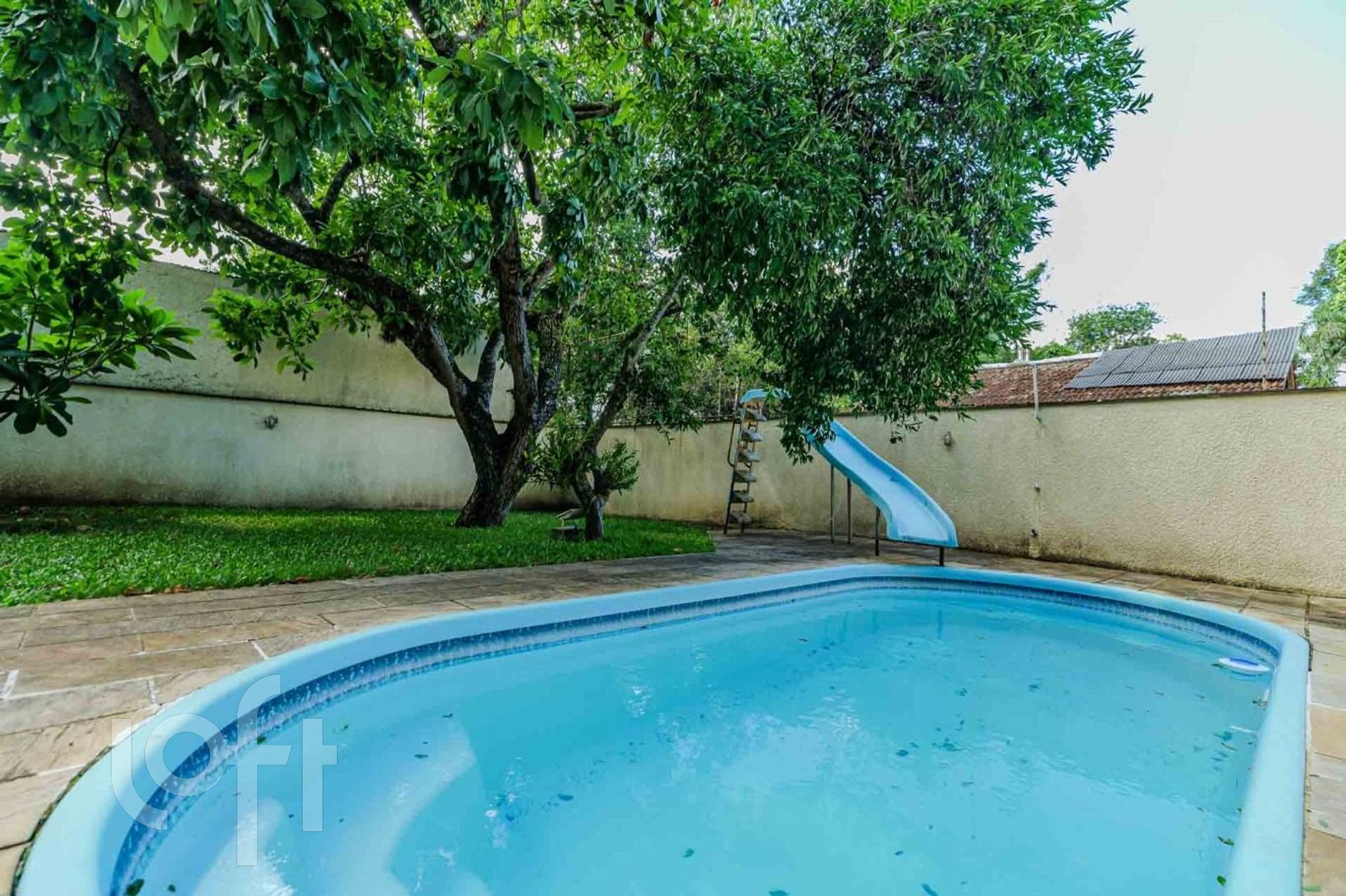Terreno 677 m2, 61,60 m de extensão frente fundo e 11,00 frente, com piscina, árvores frutíferas e ambiente todo telado.