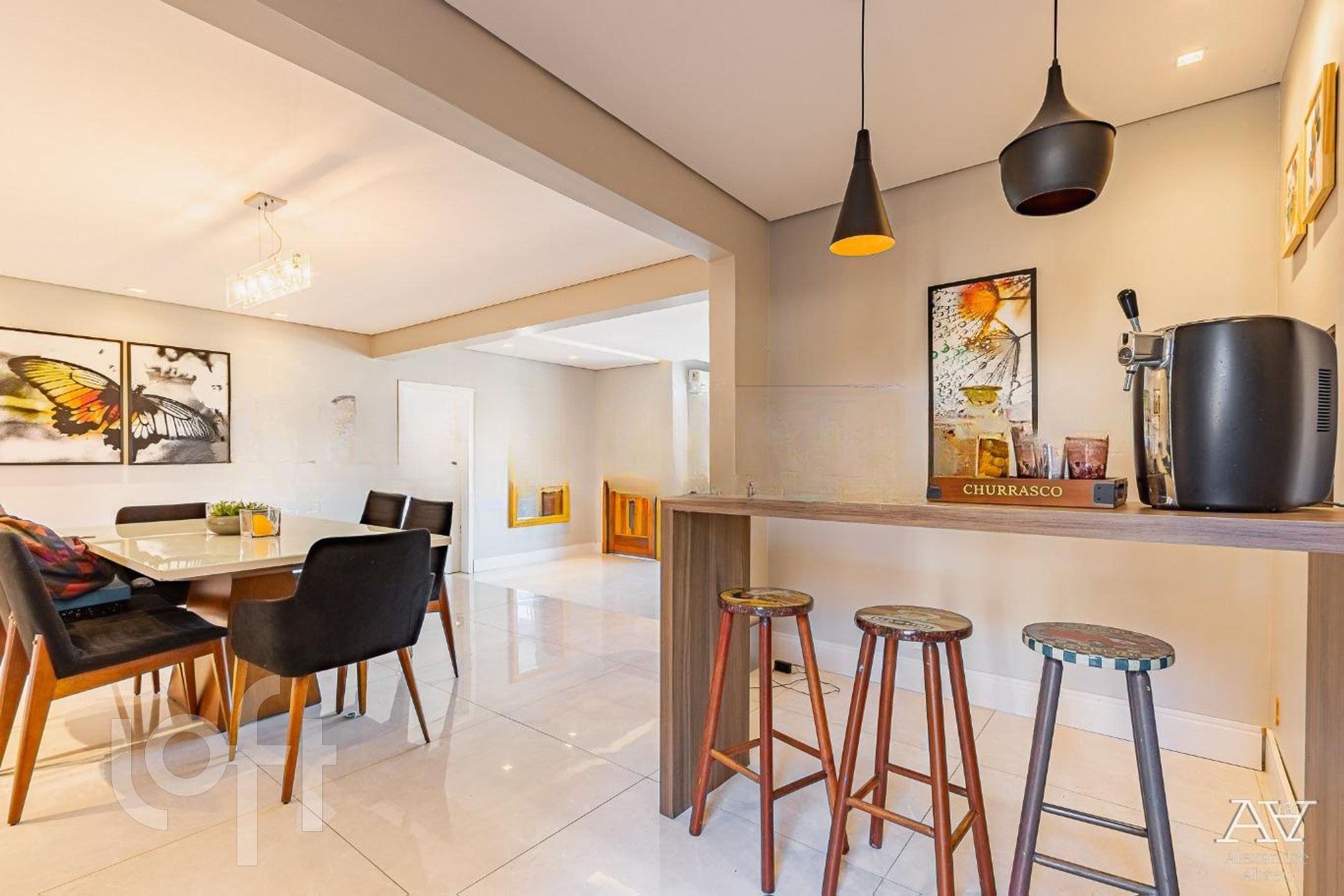 Algumas características do imóvel: Aceita Pet, Agua Quente, Area Servico, Banheiro Social, Churrasqueira, Copa Cozinha, Cozinha, Dependenciade Empregada, Estar Intimo, Lavabo, Leste, Living Hall, Sacada Com Churrasqueira, Sala Jantar, Suite Master, W C Empregada