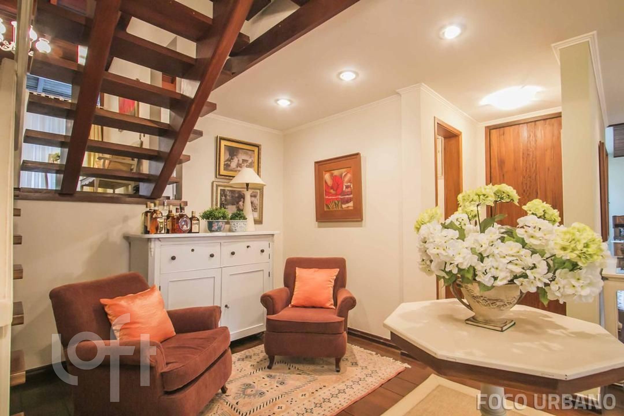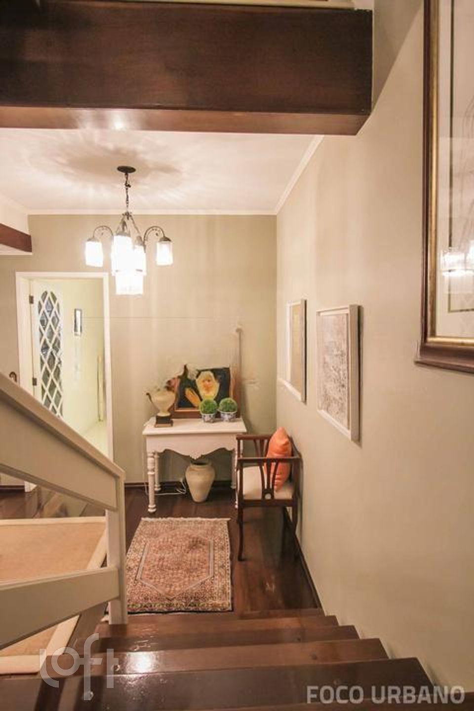 Piso superior: escada em madeira nobre, estar íntimo, 4 dormitórios com incidência do sol da manhã, banheiro com hidro, sendo uma suíte confortável com closet e hidro.
