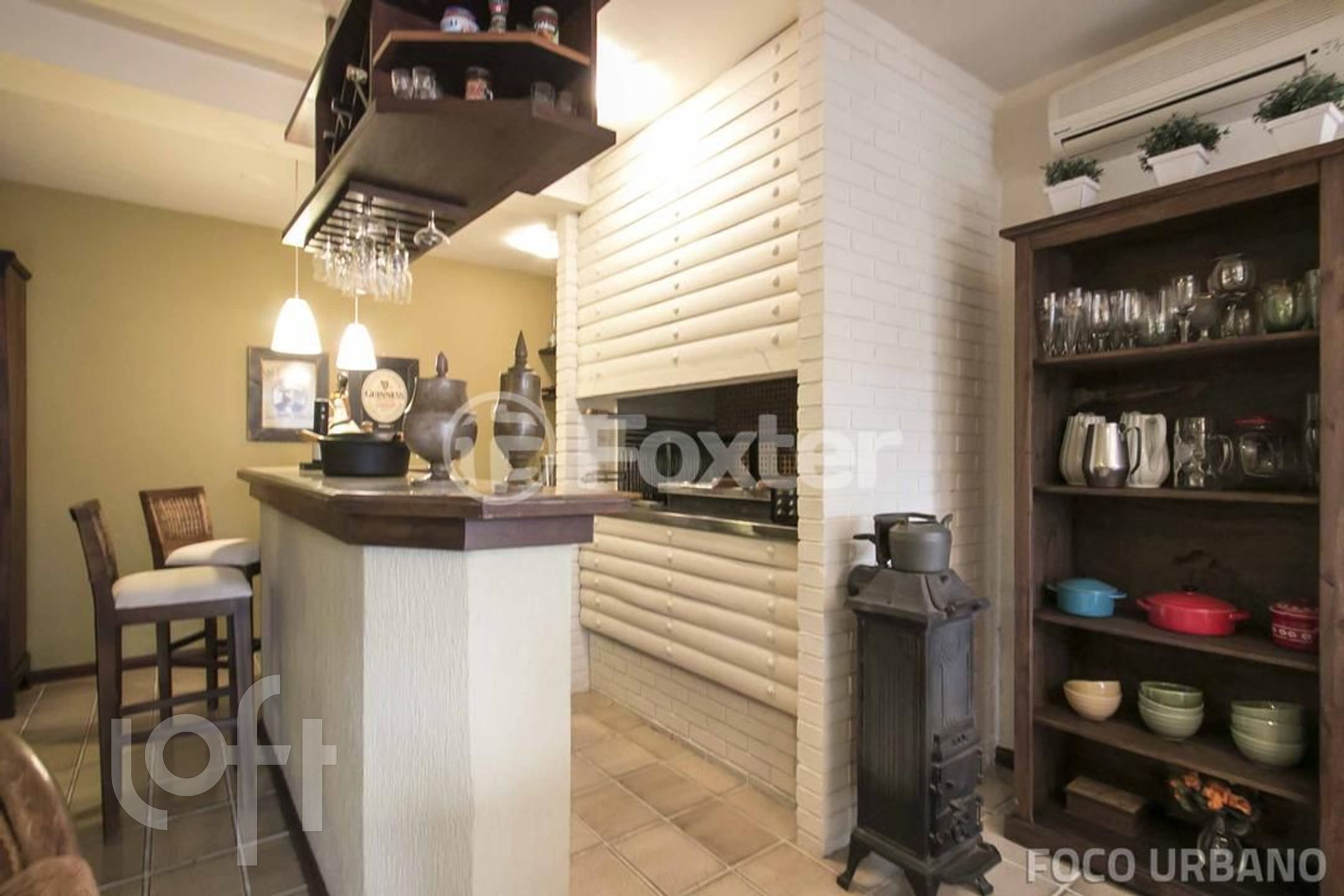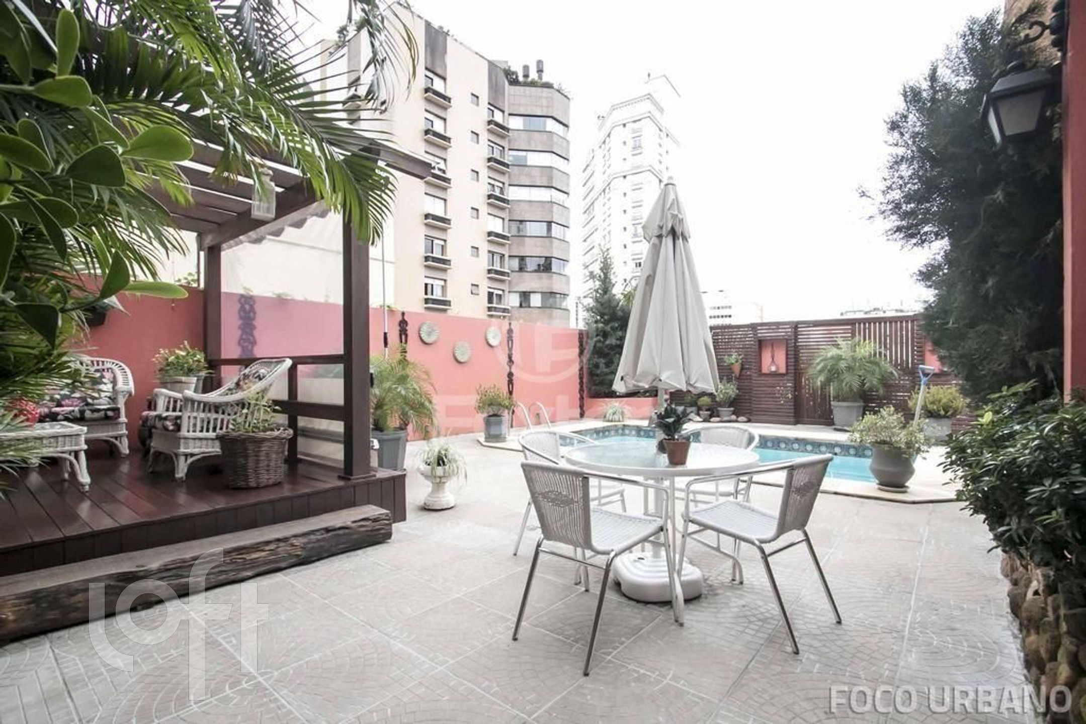 Piso inferior: hall, living integrado com estar, espaço de bar com churrasqueira e jantar com acesso a um pergolado todo envidraçado e ambientado em estilo jardim, com bela vista para a piscina. Gabinete, cozinha, lavanderia, dependência de empregada, banheiro e sala para ateliê ou academia. Pátio com paisagismo, piscina e depósito.