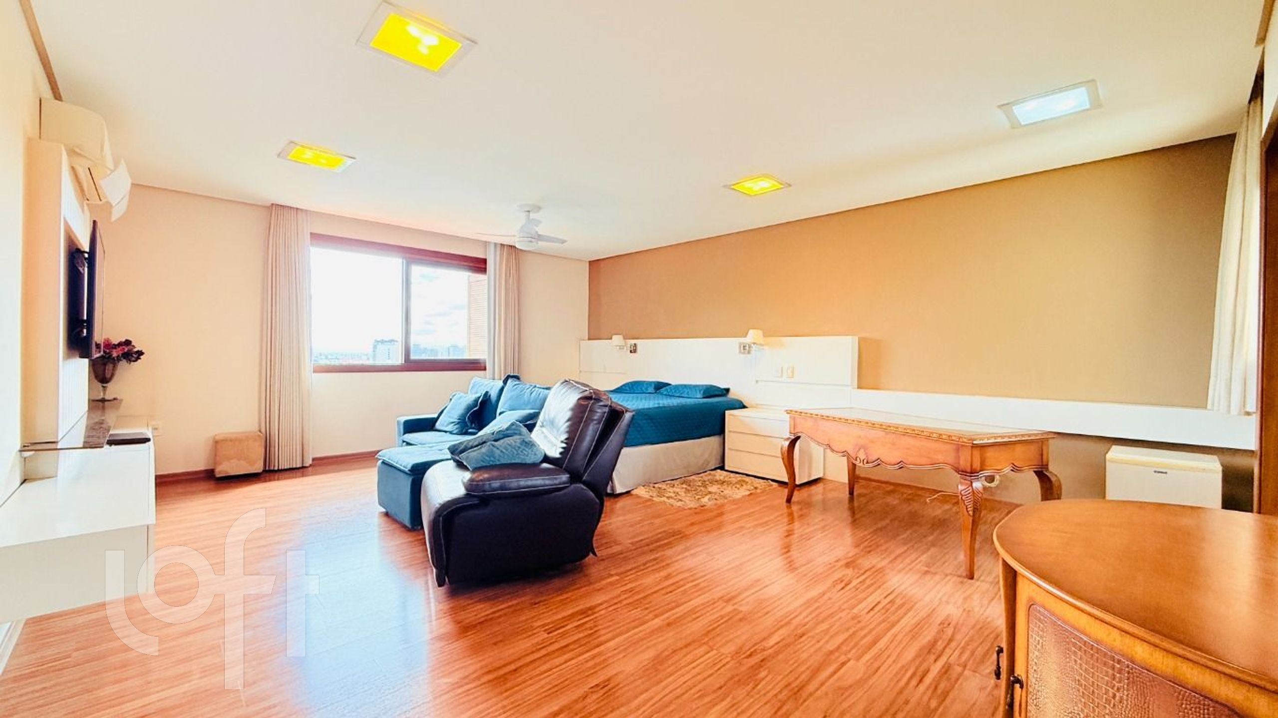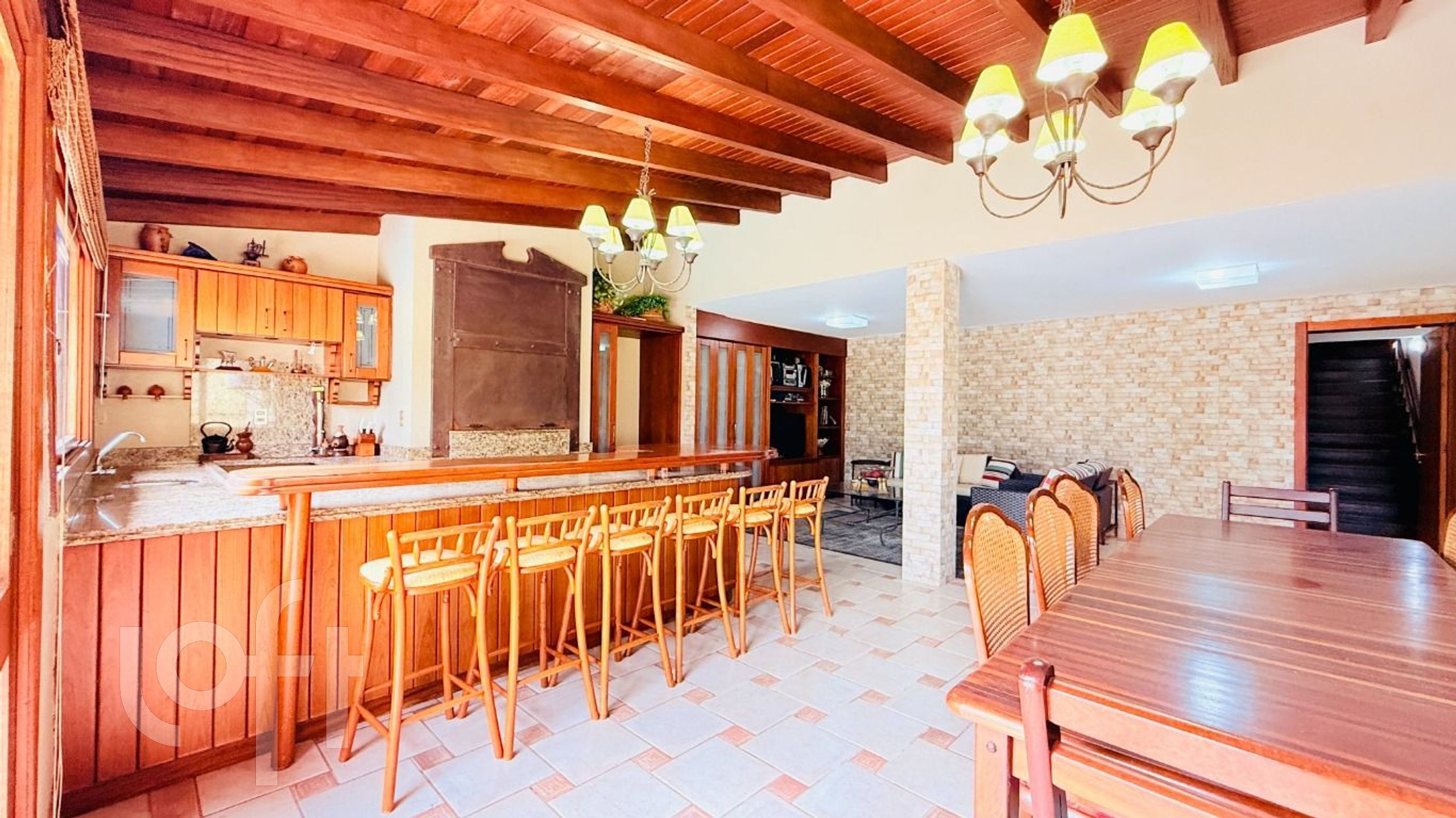 Algumas características do imóvel: Aceita Pet, Agua Quente, Area Servico, Banheiro Social, Churrasqueira, Dependenciade Empregada, Lareira, Lavabo, Leste, Living Hall, Mobiliado, Piscina, Sacada Com Churrasqueira, Sala Jantar, Semi Mobiliado, Suite Master, W C Empregada