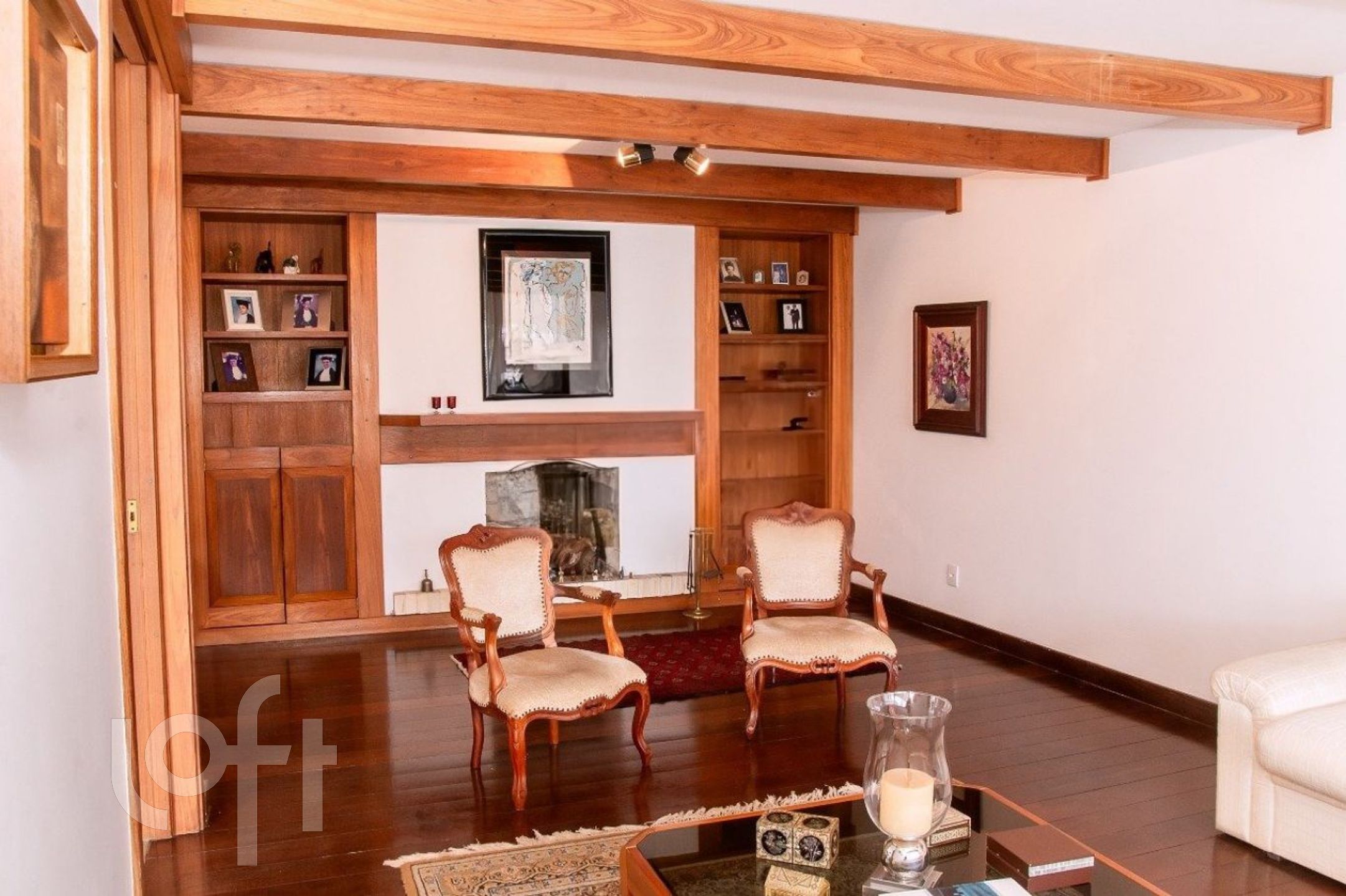 Segundo pavimento estar íntimo com lareira, os 3 dormitórios(1 suíte), 2 dormitórios com sacada e um banheiro social.