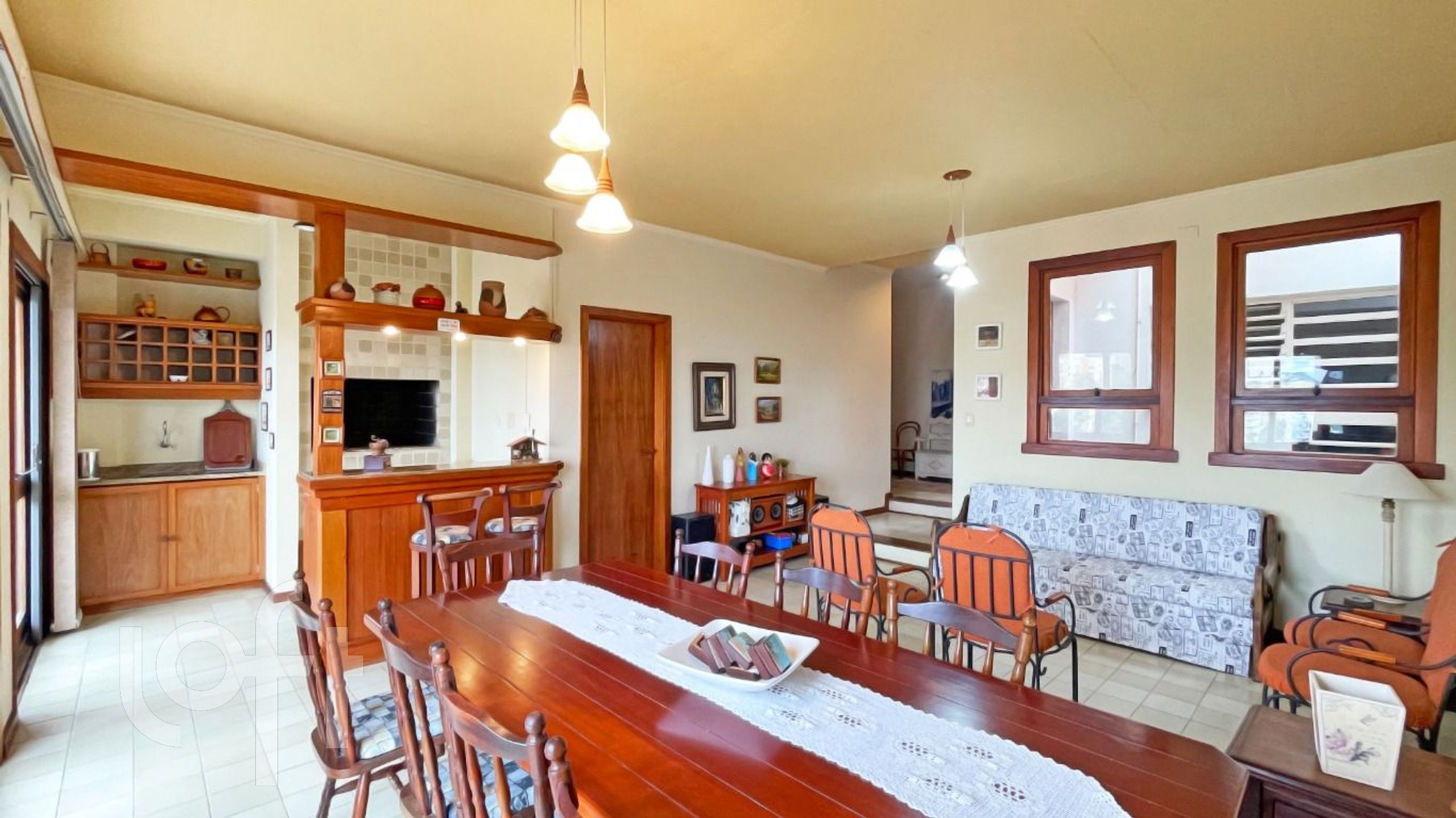 Algumas características do imóvel: Agua Quente, Area Servico, Banheiro Social, Churrasqueira, Lareira, Lavabo, Leste, Living Hall, Piscina, Sacada, Sacada Com Churrasqueira, Sala Jantar, Suite Master, W C Empregada