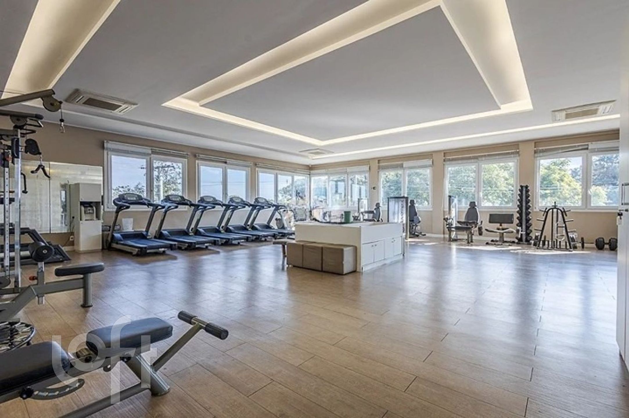 A fachada do prédio é toda em porcelanato, assim como o piso interno, ar- condicionado cassete em todos os ambientes.