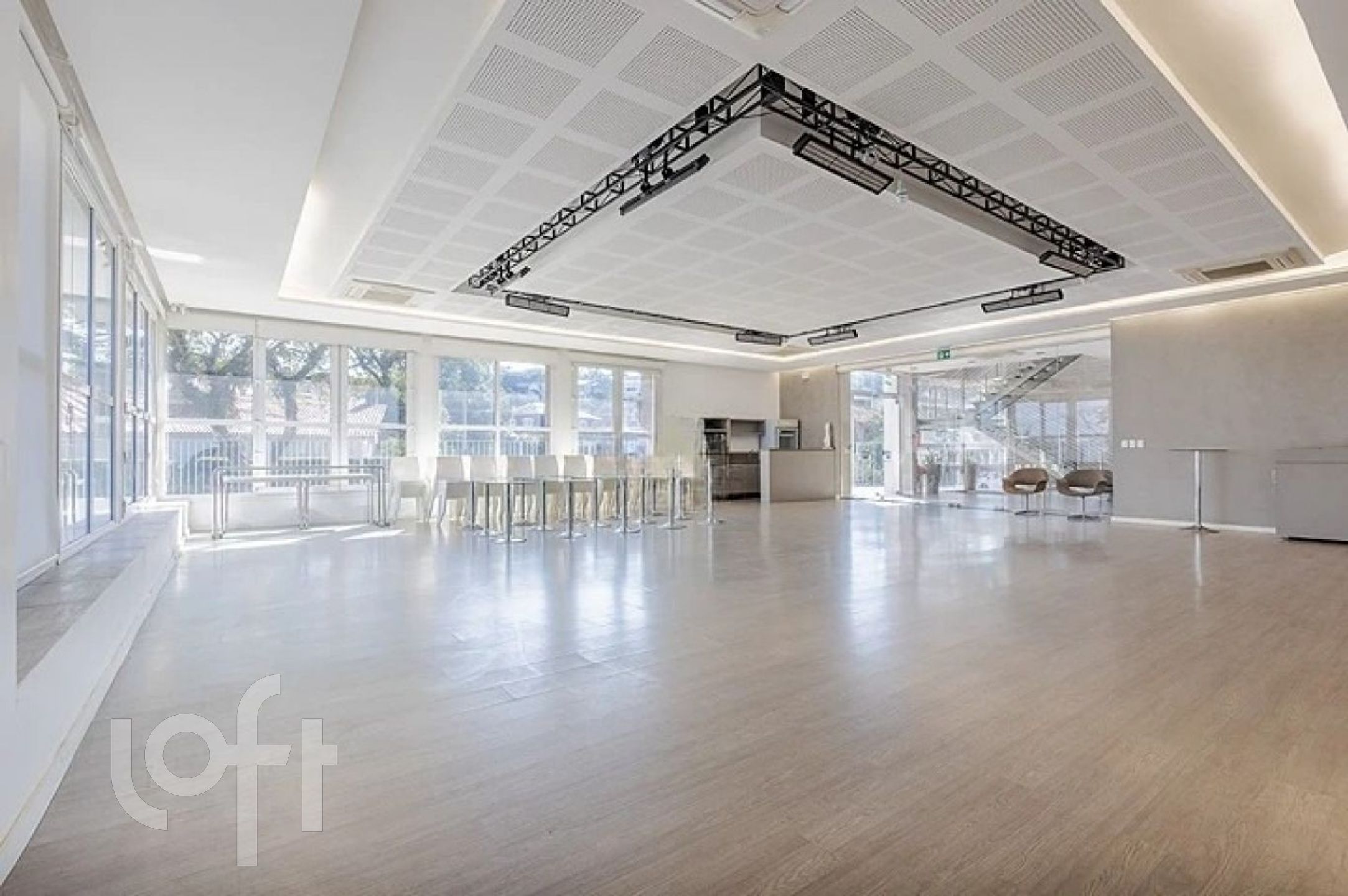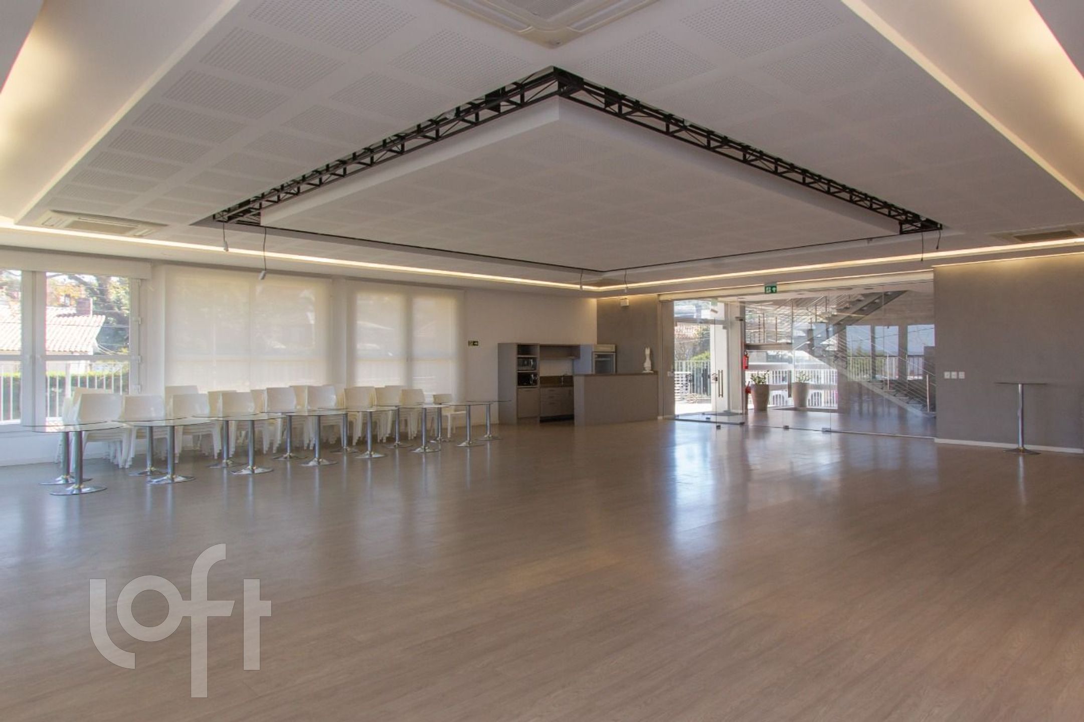 No segundo andar, mais um ambiente enorme com vista exclusiva para o Guaíba, 2 banheiros com chuveiros e mais um chuveiro separado, escritório e mais uma pequena cozinha.