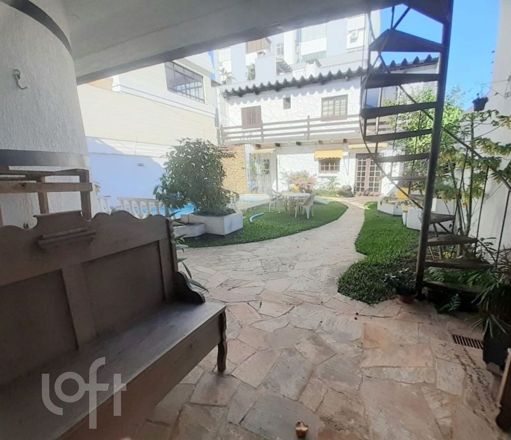 A casa com 440m² privativos, 4 quartos, sendo 1 suíte máster. Amplo living com sacada e bar, sala de jantar com lareira, jardim de inverno, cozinha, 2 banheiros sociais, 2 lavabos e terraço. Garagem para 3 carros, pátio com piscina, nos fundos salão de festas com churrasqueira, dependência de empregada e acima apartamento com 1 dormitório. Agende sua visita com a corretora licenciada.