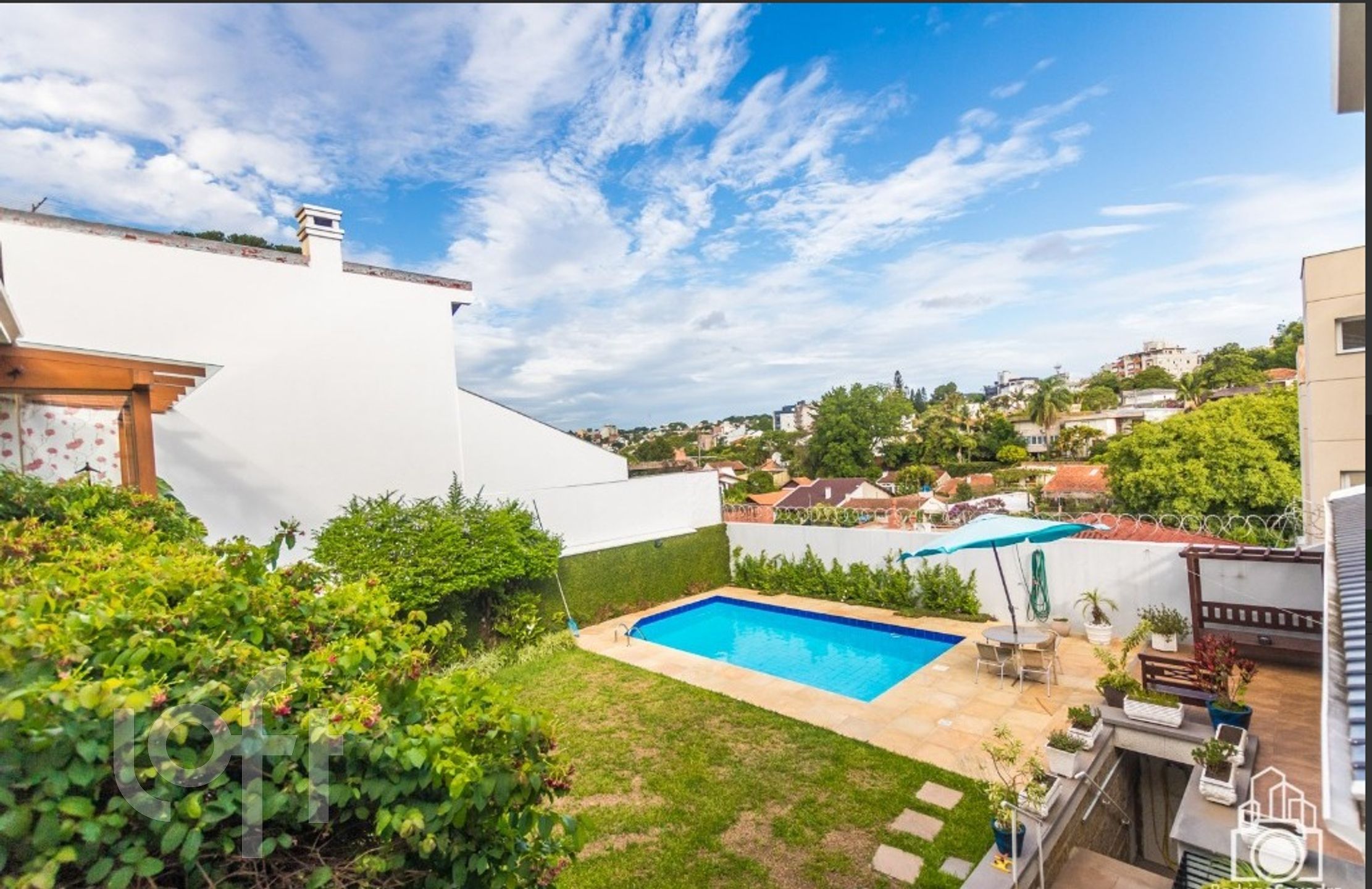 Vende-se maravilhosa residência no bairro Três Figueiras, junto a praça, com 6 dormitórios, sendo 4 suítes, com 2 amplos livings, cozinhas, 2 salas com lareira, salão de festas com espetacular pátio com piscina, tipo clube, totalmente mobiliada, capacidade confortável para 2 famílias, com amplo e cuidado jardim, garagem para 5 veículos, dependência de empregada, espaço para adega, impecável, sem qualquer tipo de reparo, toda manutenção em dia, em terreno de esquina, irretocável, para pessoas exigentes.