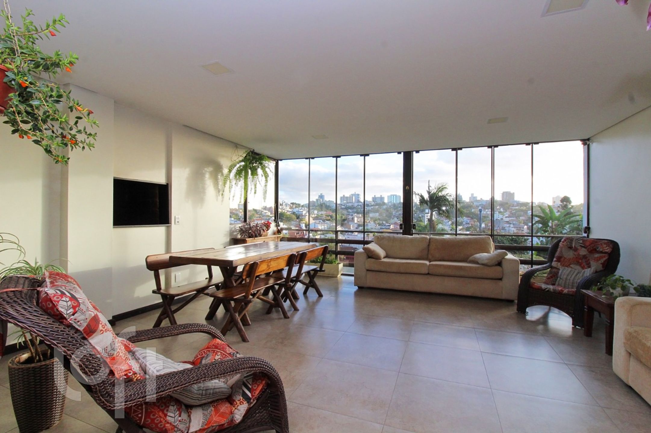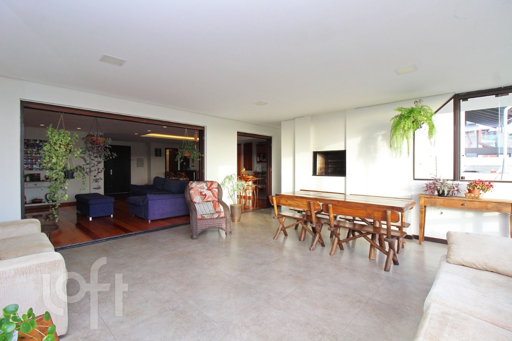 Algumas características do imóvel: Agua Quente, Area Servico, Banheiro Social, Churrasqueira, Lareira, Leste, Living Hall, Piscina, Sacada, Sacada Com Churrasqueira, Sala Jantar, Suite Master, Terraco