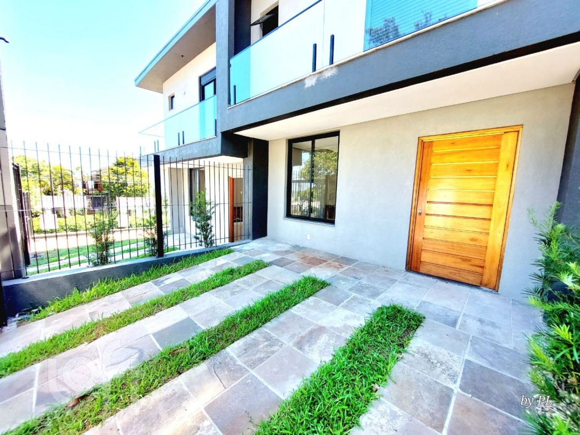 Destaque para as esquadrias em alumínio anodizado preto, escadas em madeira nobre e guarda-corpo em vidro, que garantem luminosidade, requinte e amplitude visual. A residência ainda conta com gradil moderno, esperas para água quente, preparação para automação do portão e vaga para dois veículos.