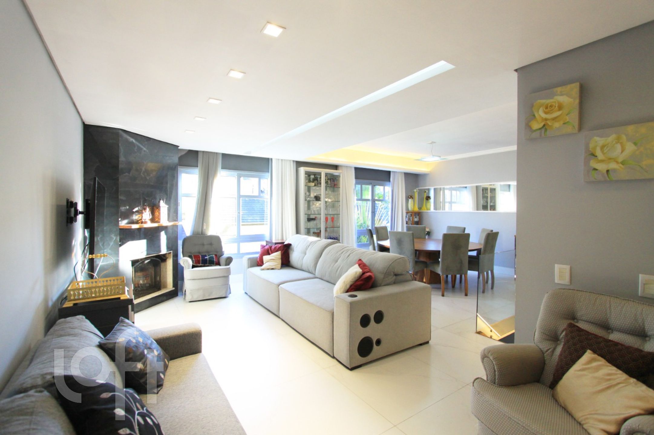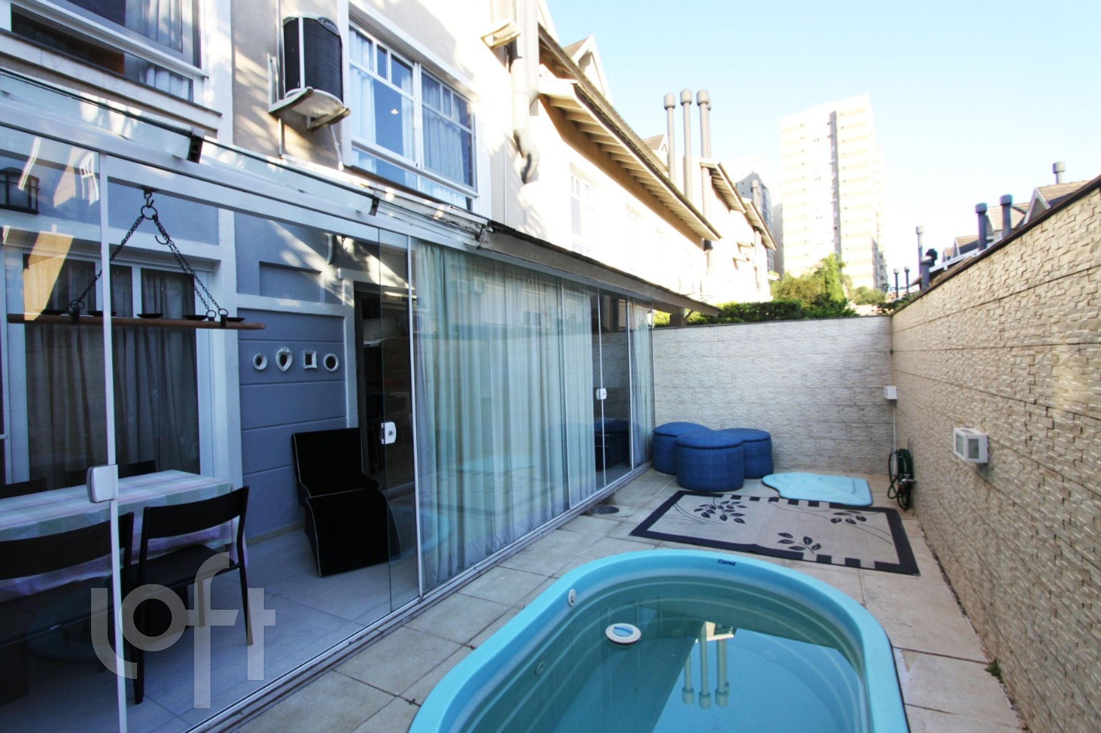Algumas características do imóvel: Aceita Pet, Agua Quente, Area Servico, Banheiro Social, Churrasqueira, Cozinha, Estar Intimo, Lareira, Lavabo, Leste, Piscina, Quintal, Sacada Com Churrasqueira, Sala Jantar, Suite Master, W C Empregada
