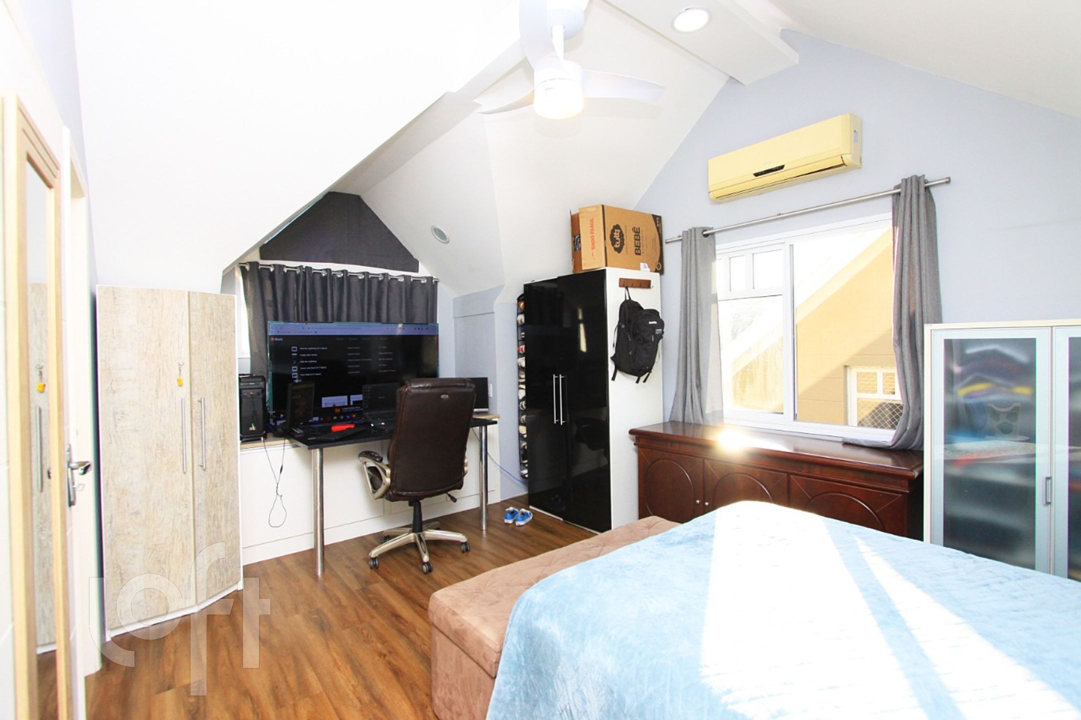 No sotão temos um espaço muito amplo 23m², hoje é a 4ª suíte com banheiro completo e um ótimo depósito.