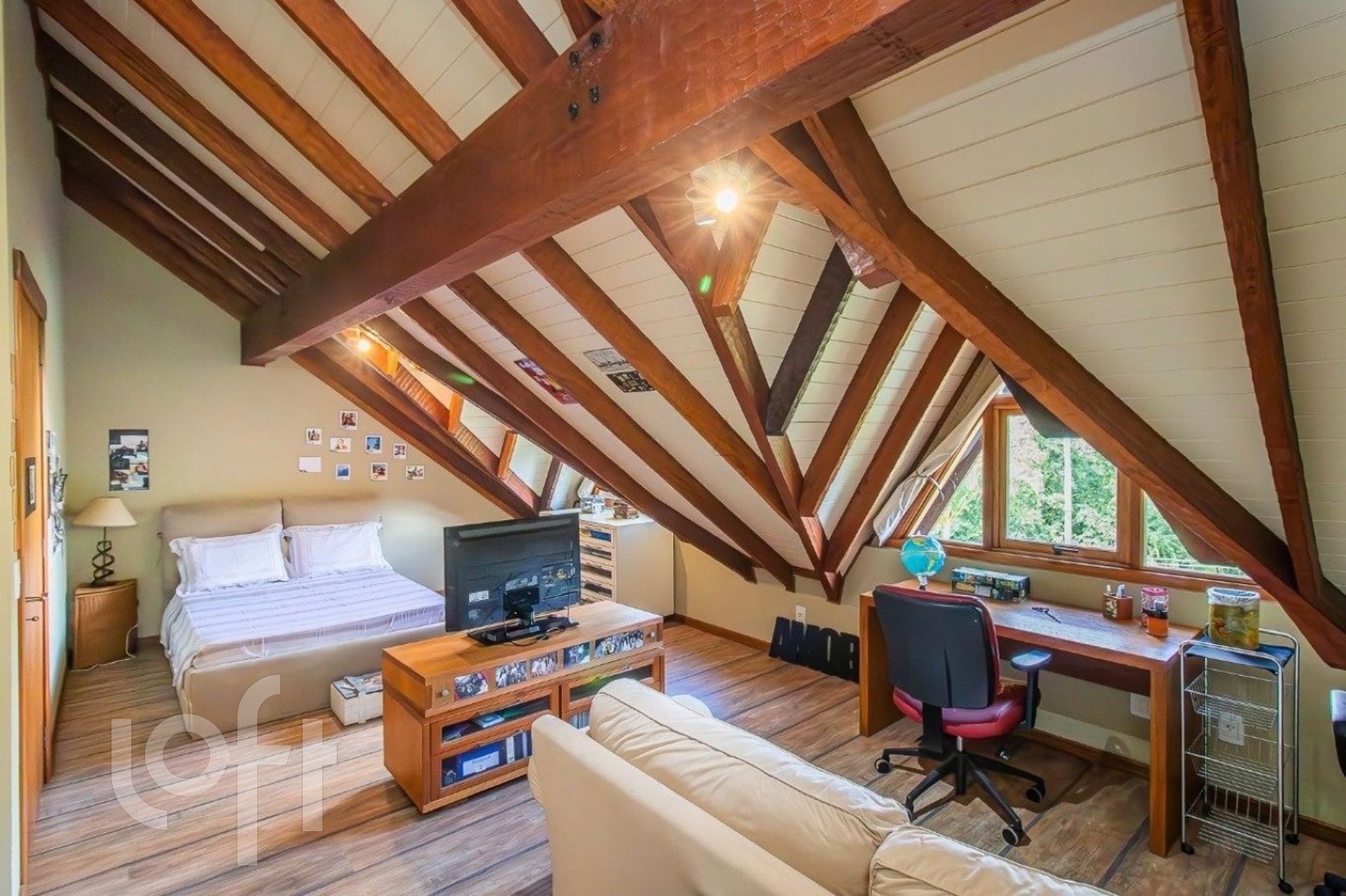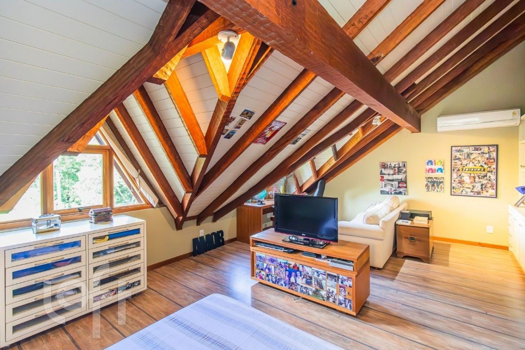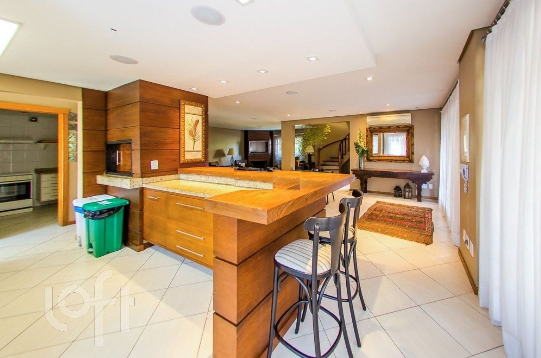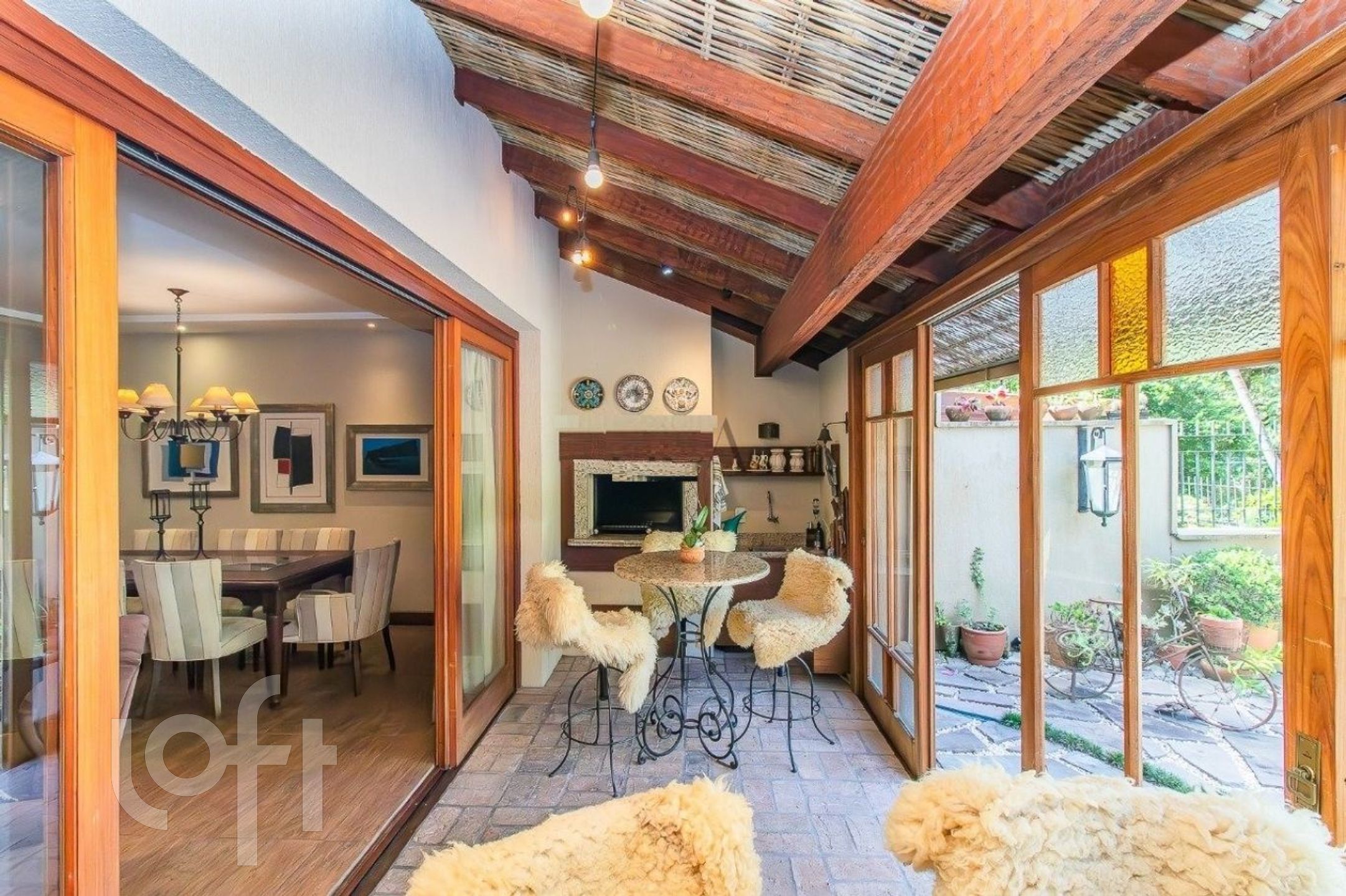 amplo hall de entrada e lavabo, copa-cozinha funcional com área de serviço independente, sala de jantar e aconchegante sala de estar com lareira, espaço gourmet completo com churrasqueira, integrado a pátio aberto, suíte máster com closet no andar superior, sótão transformado em espaço completo com suíte e sala de estar ? ideal como home office, estúdio ou ambiente íntimo, ambientes climatizados para o seu total conforto.
