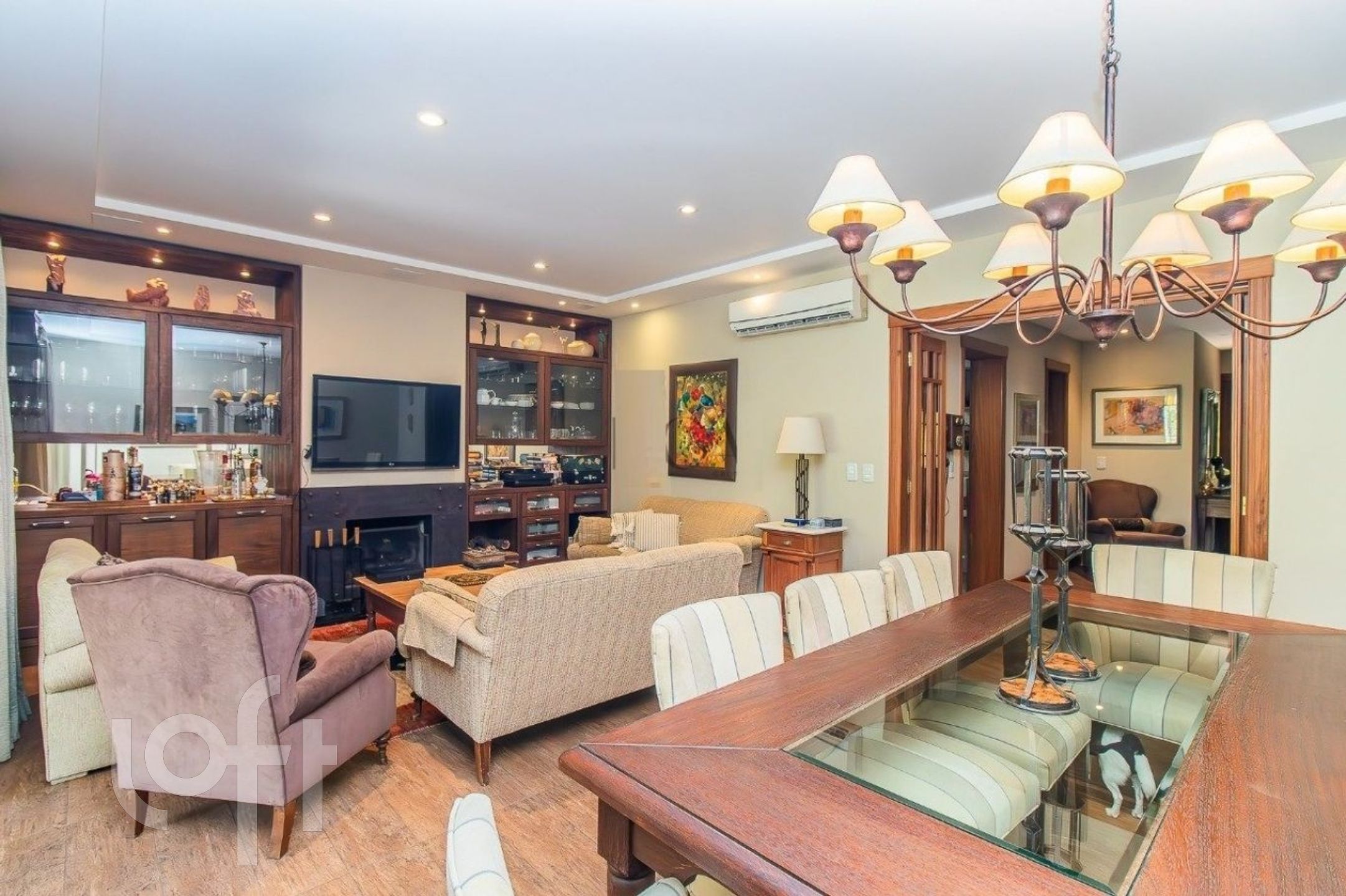 Algumas características do imóvel: Aceita Pet, Agua Quente, Area Servico, Banheiro Social, Churrasqueira, Lareira, Lavabo, Leste, Living Hall, Sacada Com Churrasqueira, Suite Master, W C Empregada